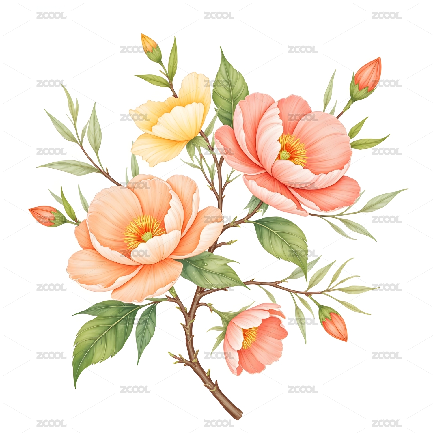 花卉插画优雅绽放