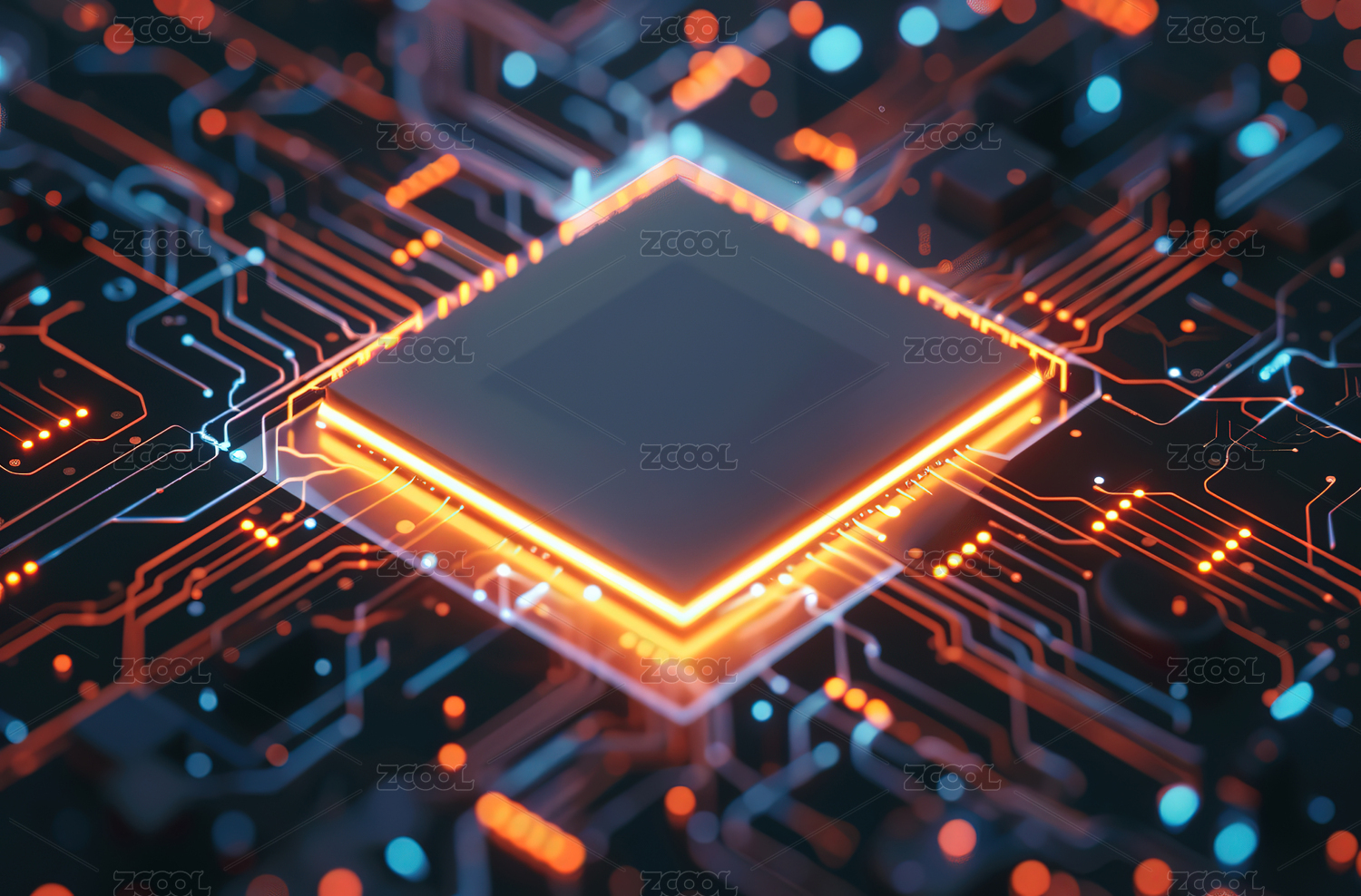 科技,芯片,电路,蓝色,光效,线路,电子,发光,处理器,数字