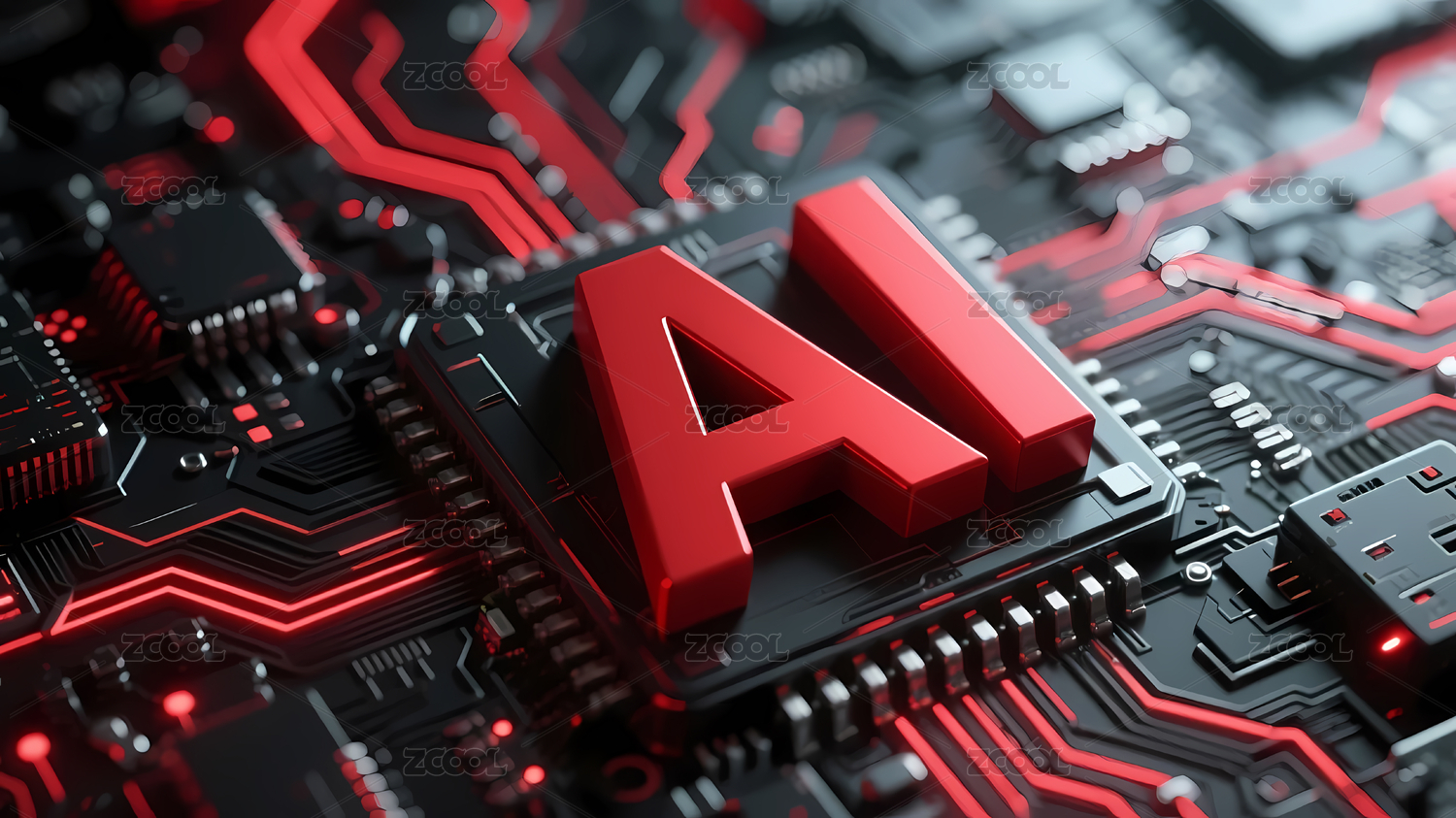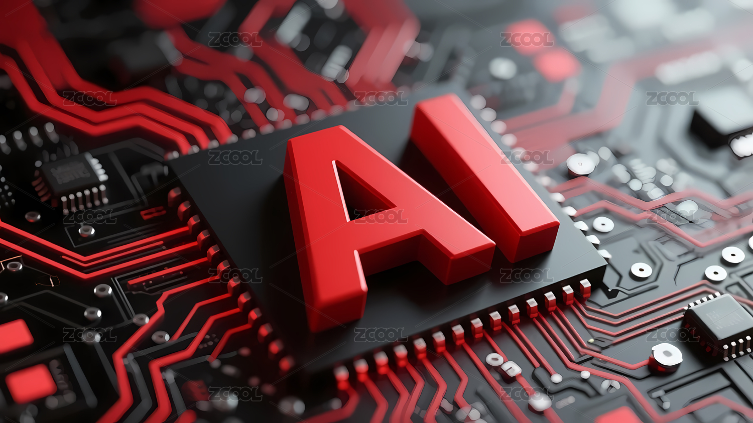 未来,科技,现代,设计,芯片,电路,黑色,红色,立体,智能