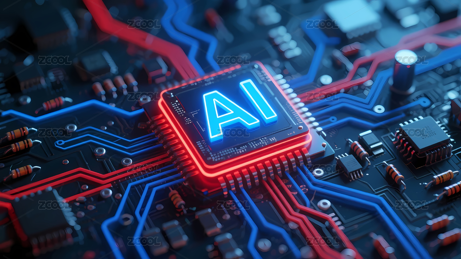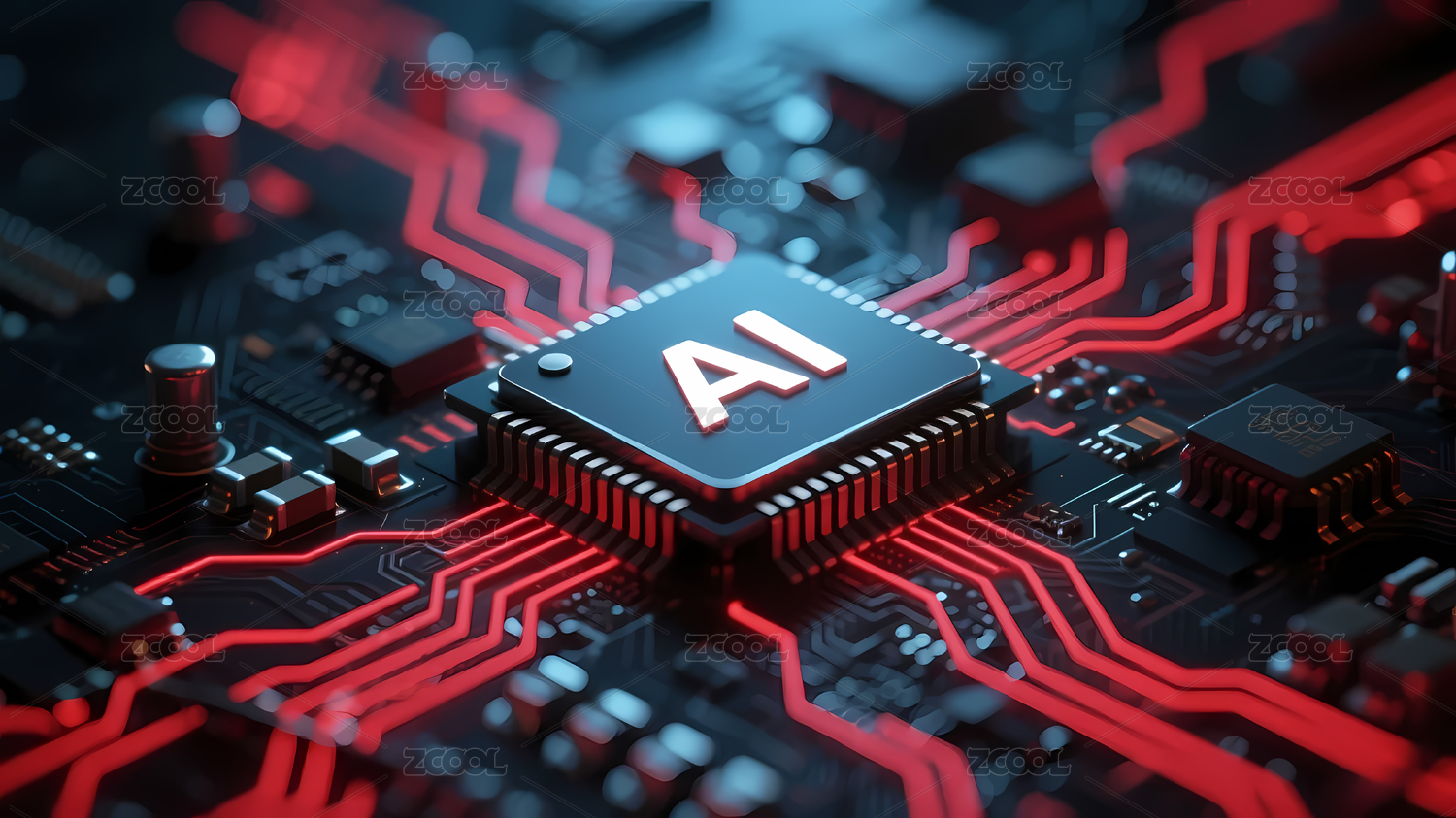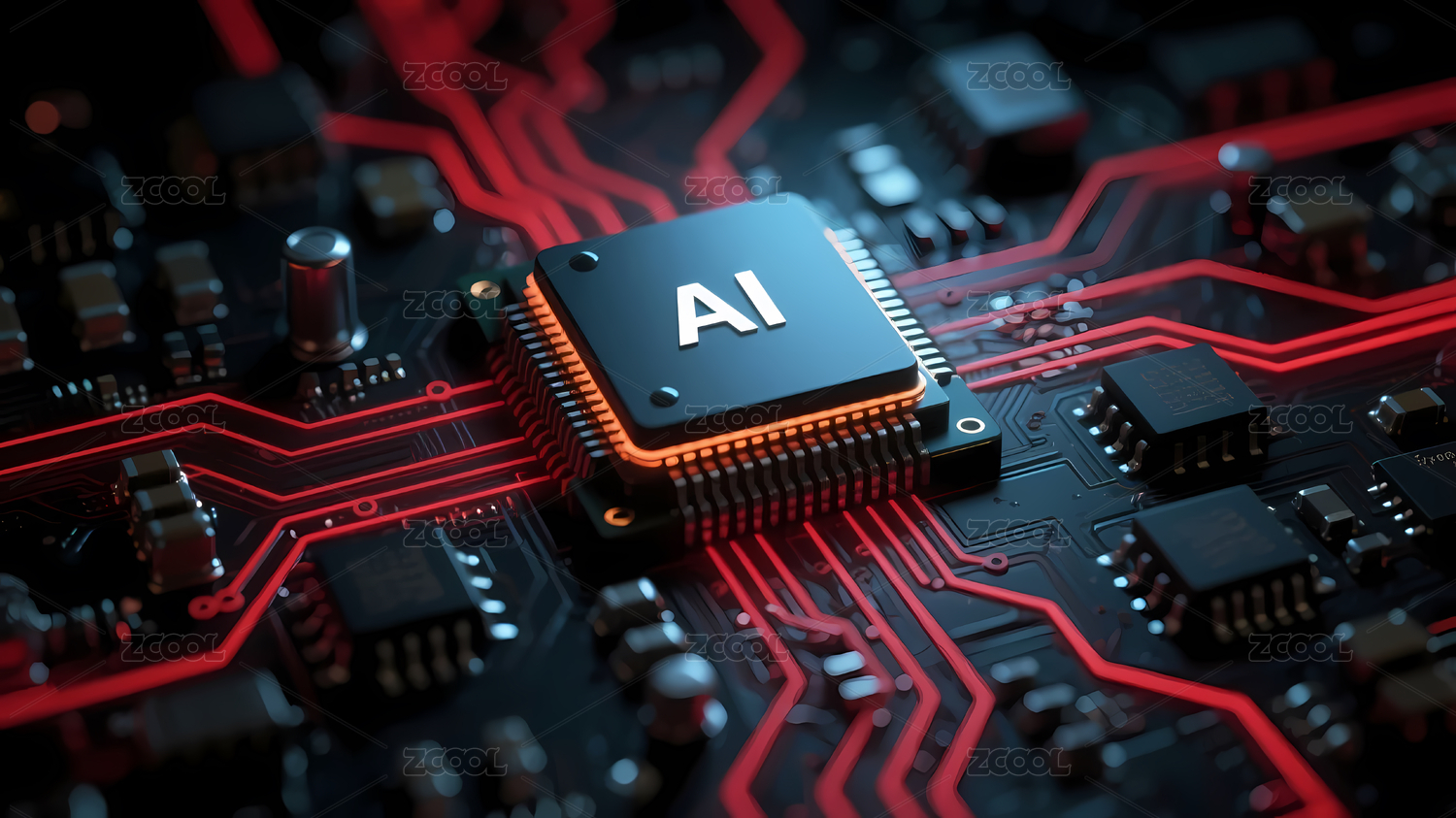 红色电路板与AI标志