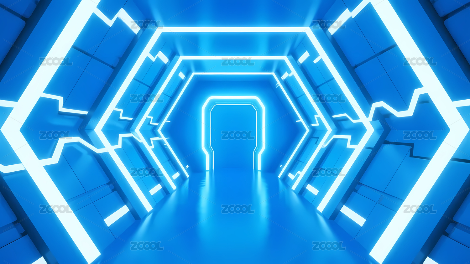 通道,灯光,走廊,地面,科技,未来,六边形,天花板,反射,现代