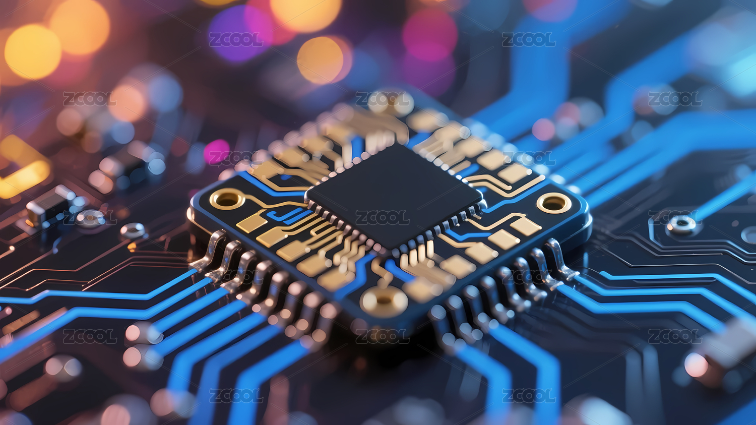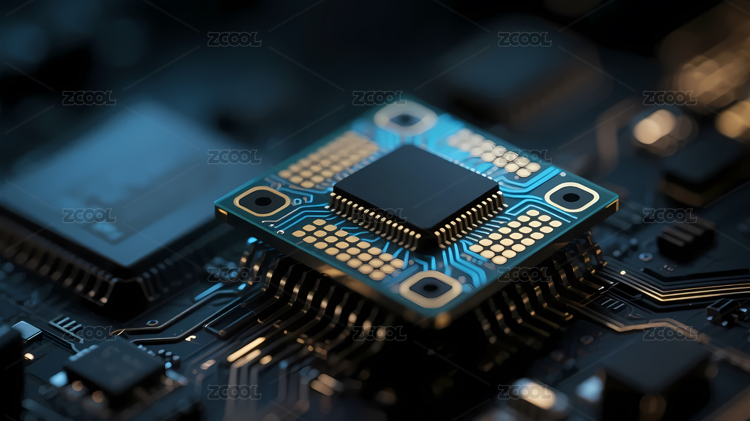 科技,电路,背景,芯片,蓝色,深蓝,元件,金属,冷峻,方形