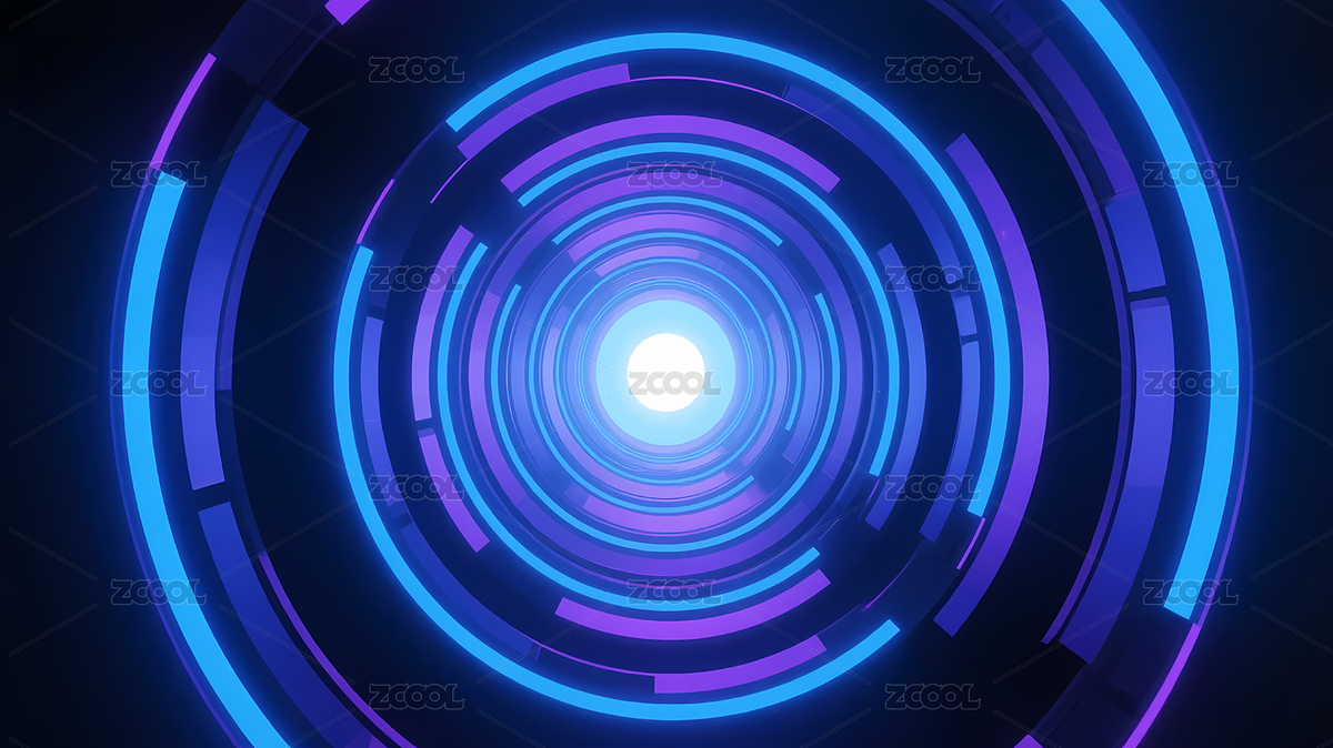 紫蓝霓虹圆形隧道