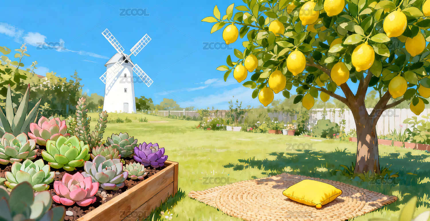 蝴蝶,阳光,饮料,花园,蛋糕,向日葵,凉亭,绿草,木架,紫藤