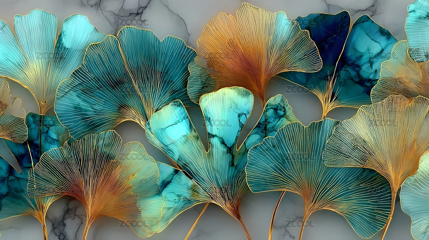 银杏叶图案交织呈现自然艺术的装饰视觉
