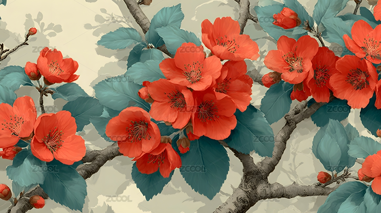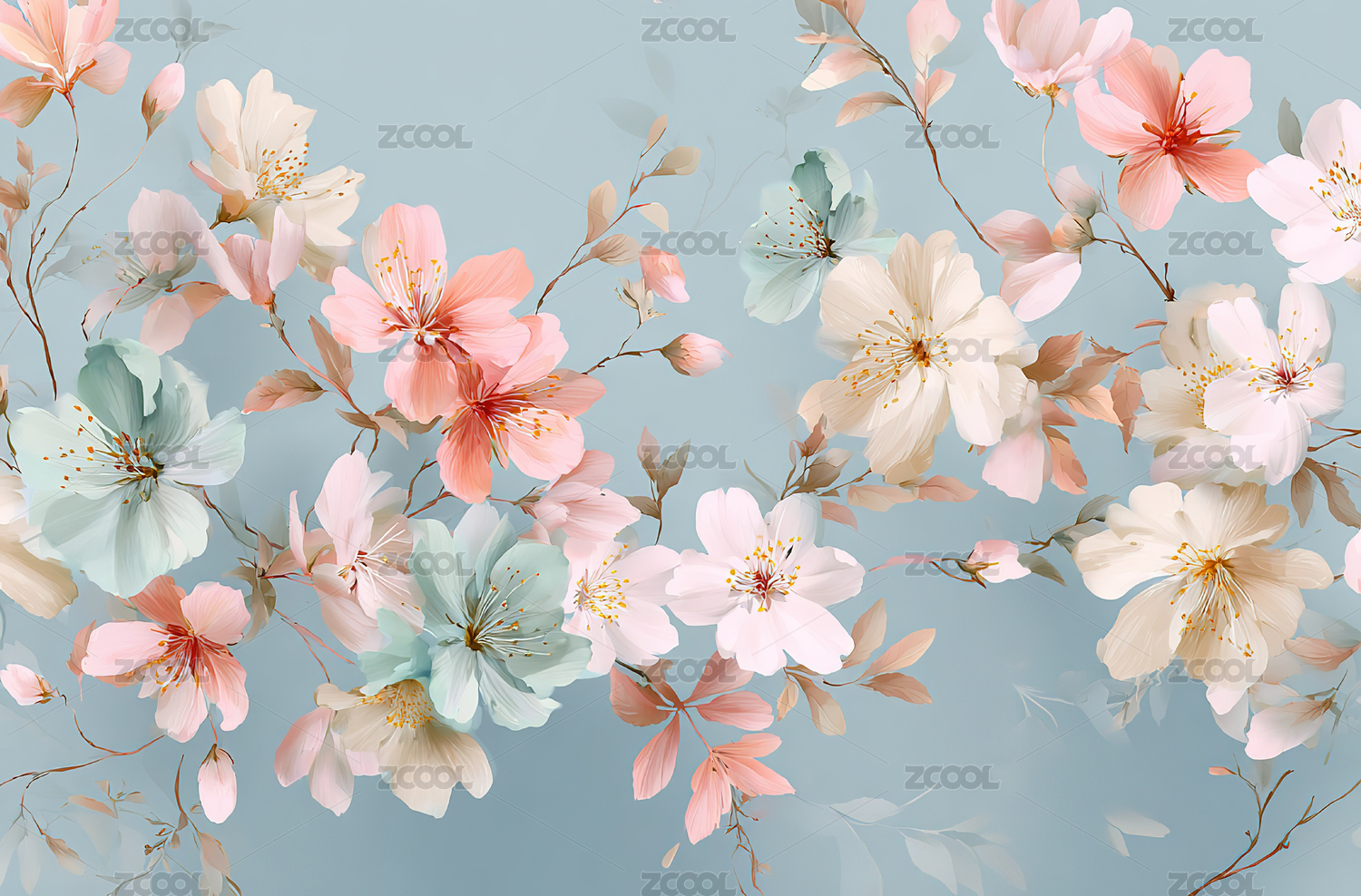 淡雅花卉枝条背景图