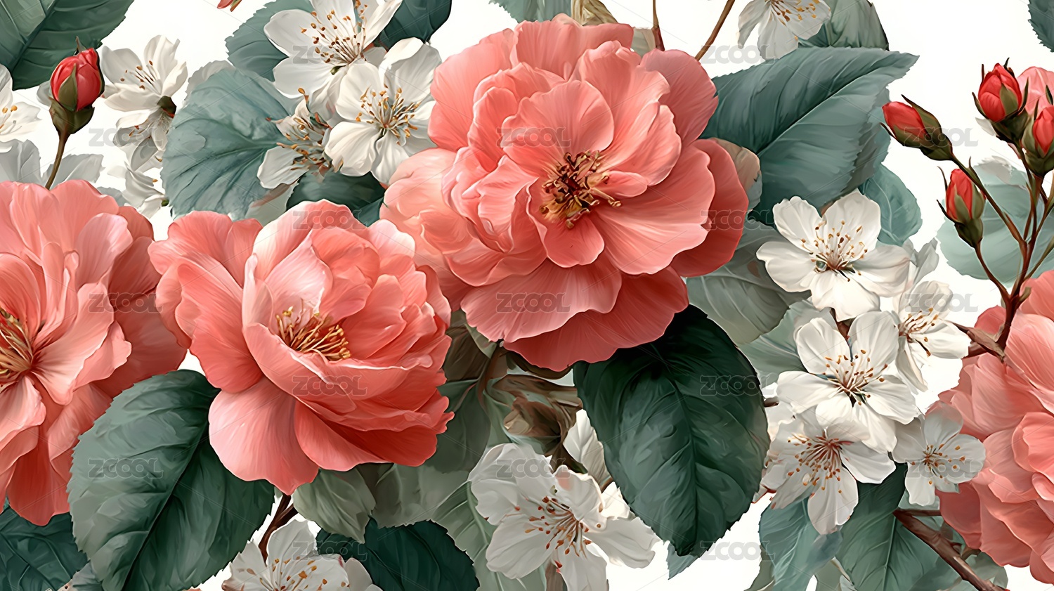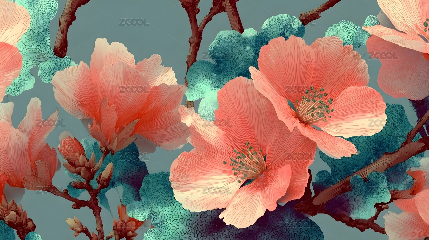 珊瑚色花朵艺术插画