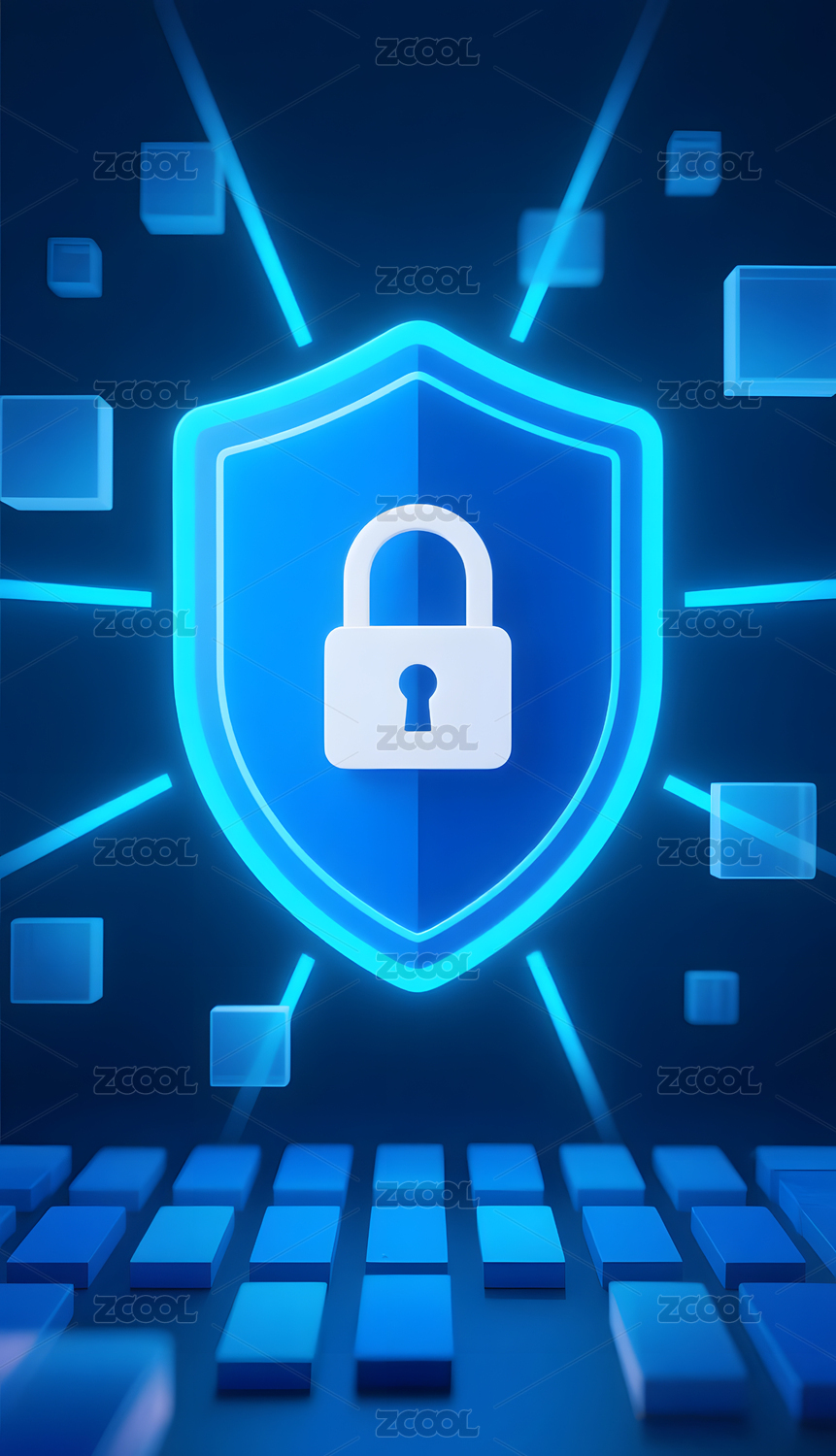 盾牌,锁,蓝色,科技,安全,防护,保护,图标,网络,连接