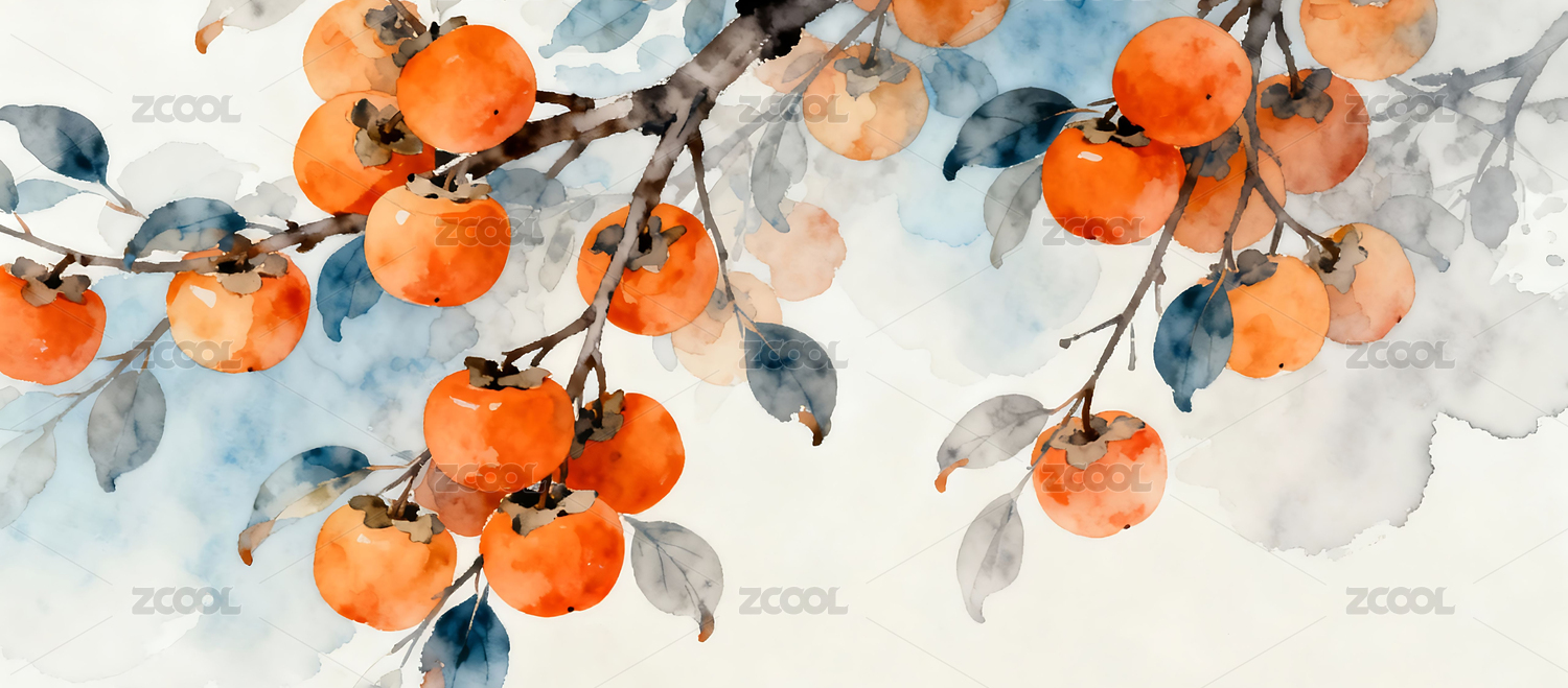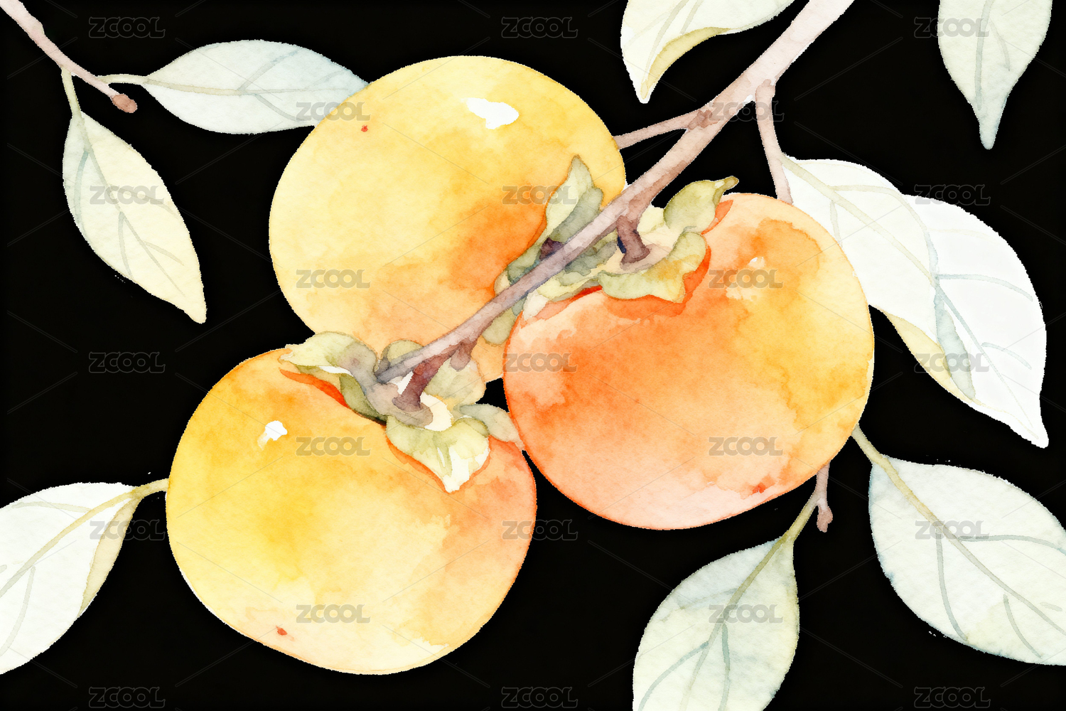 红色,艺术,植物,柿子,水彩,果实,叶子,阴影,绘画,橙色