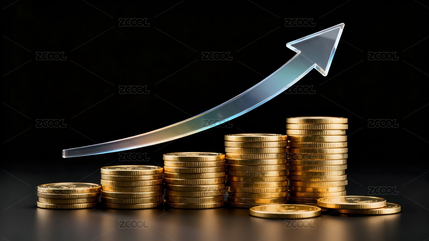 金币堆叠与上升箭头象征增长