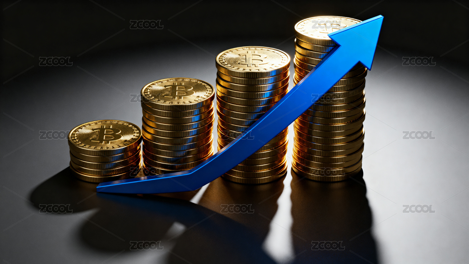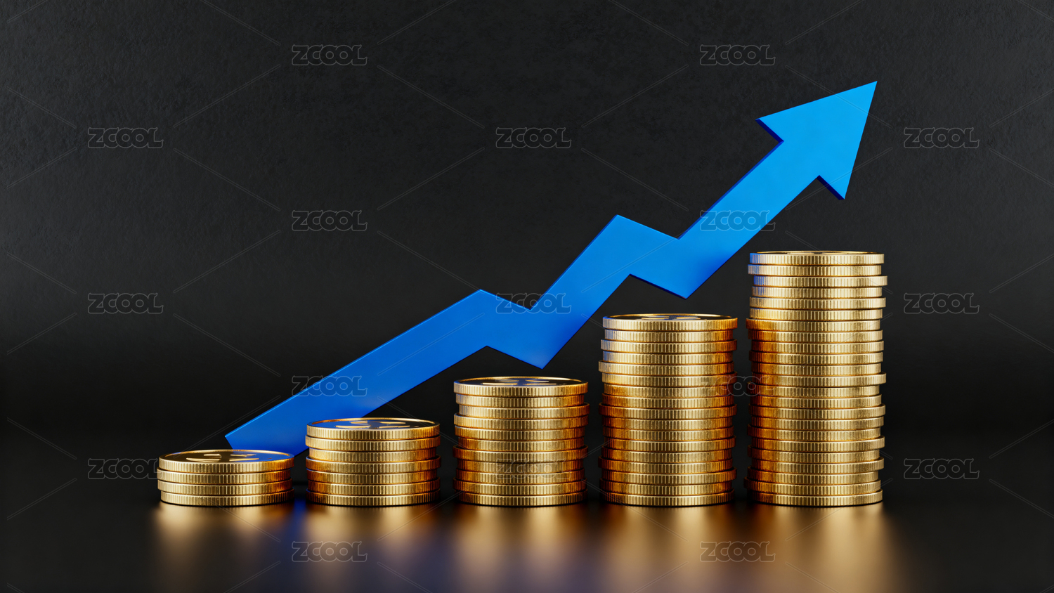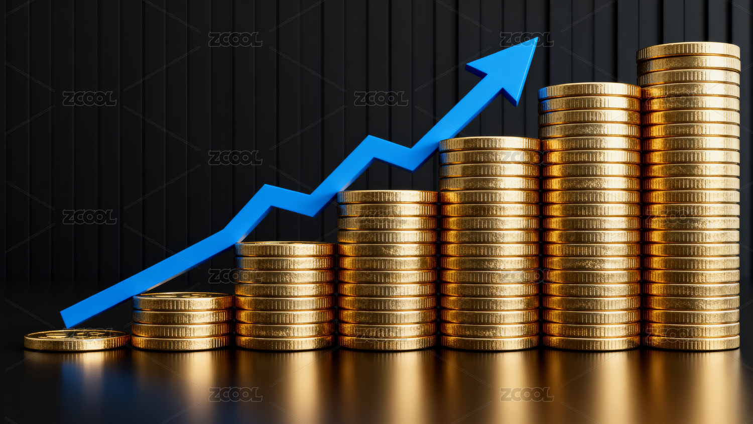 金币堆叠与蓝色箭头增长趋势图