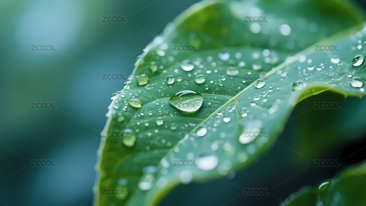 特写,绿色,水滴,叶子,植物,叶脉,露珠,自然,清新,叶面
