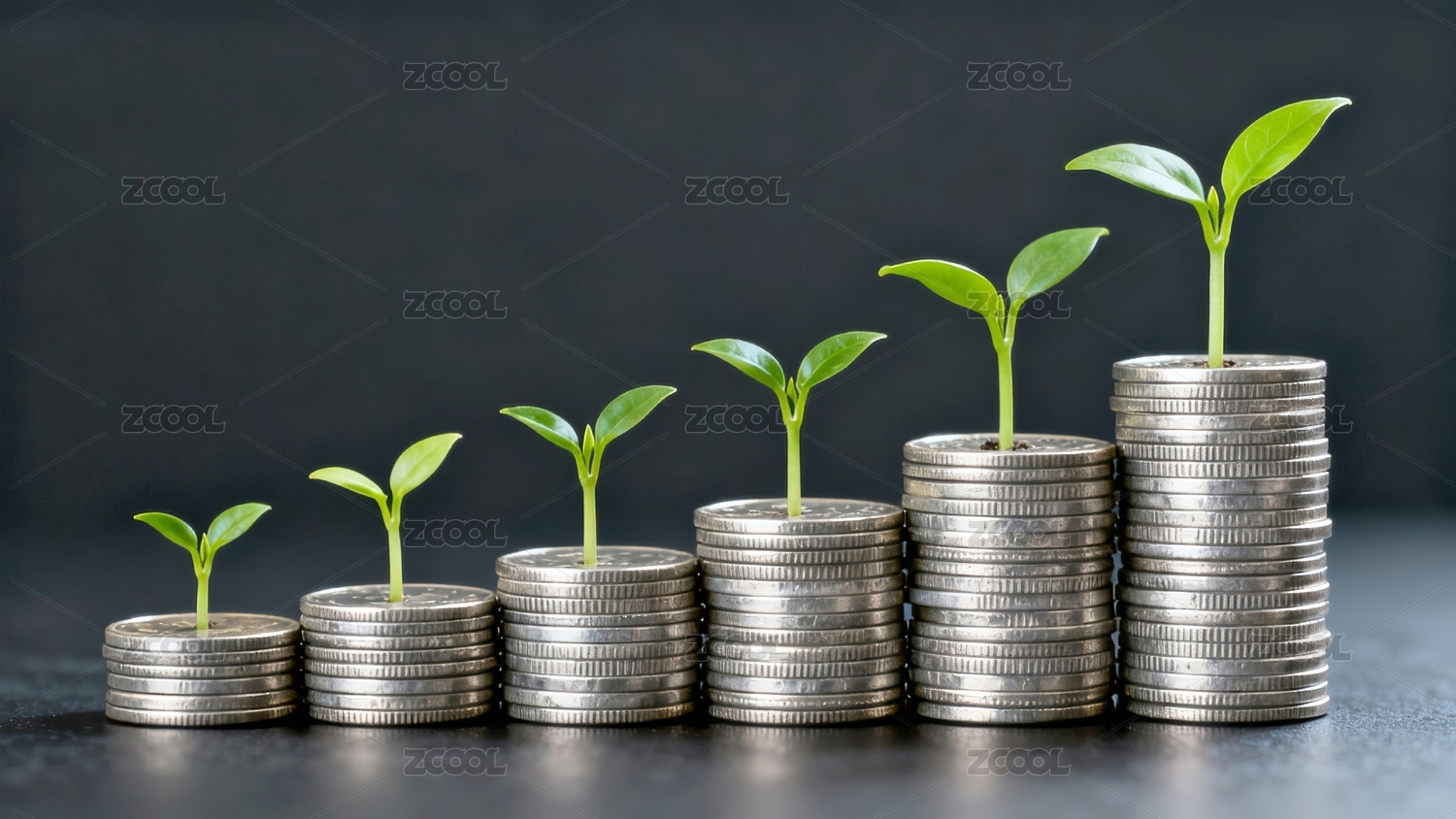 金币硬币堆砌起来向上生长的储蓄理财投资概念