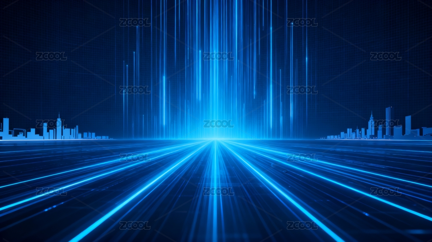 城市天际线与光速线条