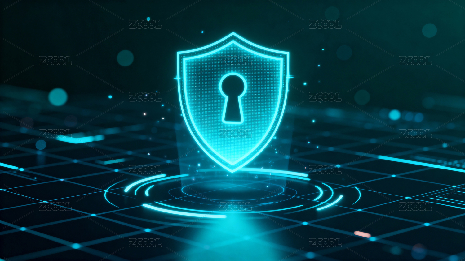 深蓝色科技悬浮半透明数据防护罩盾牌背景