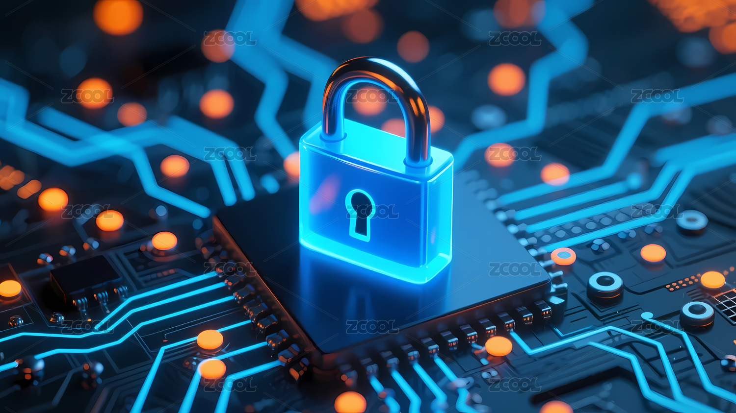 红蓝锁与电路板背景