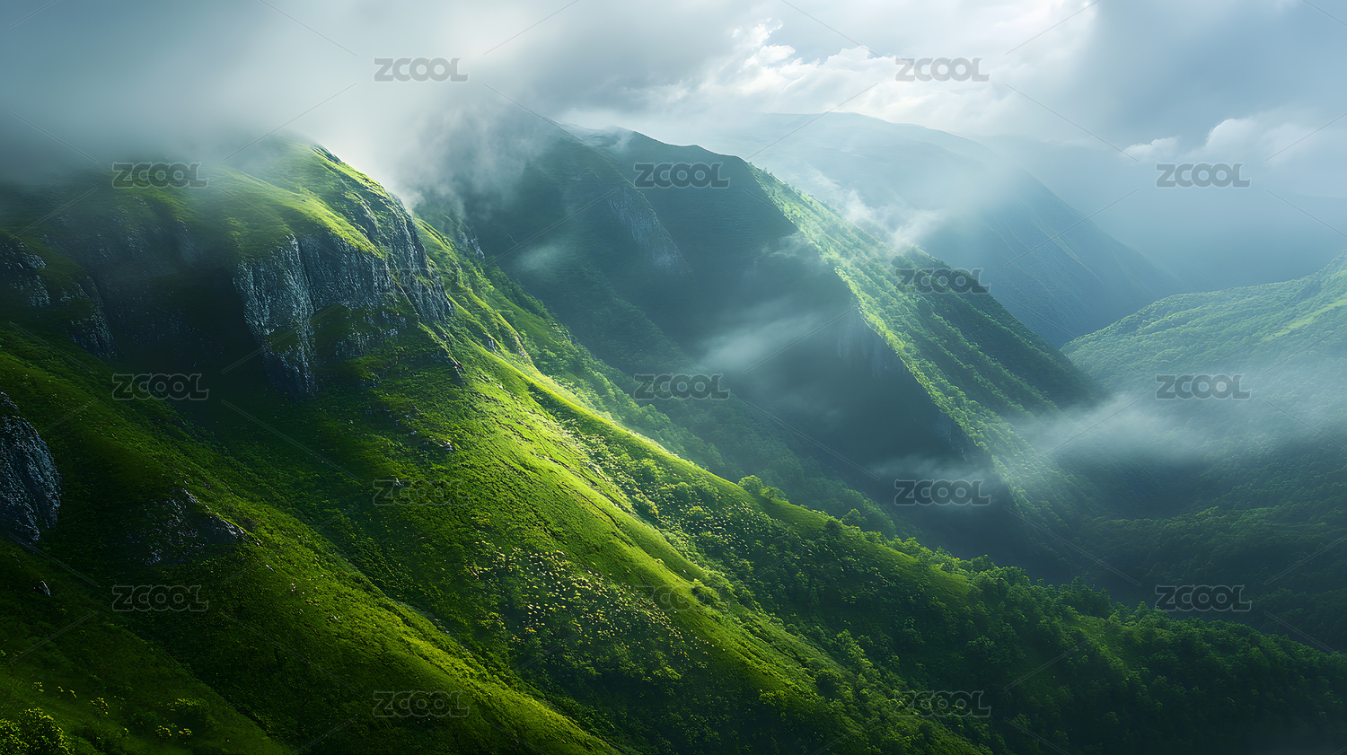 绿色,树木,自然,风景,山脉,山峦,植被,高山,云雾,山谷