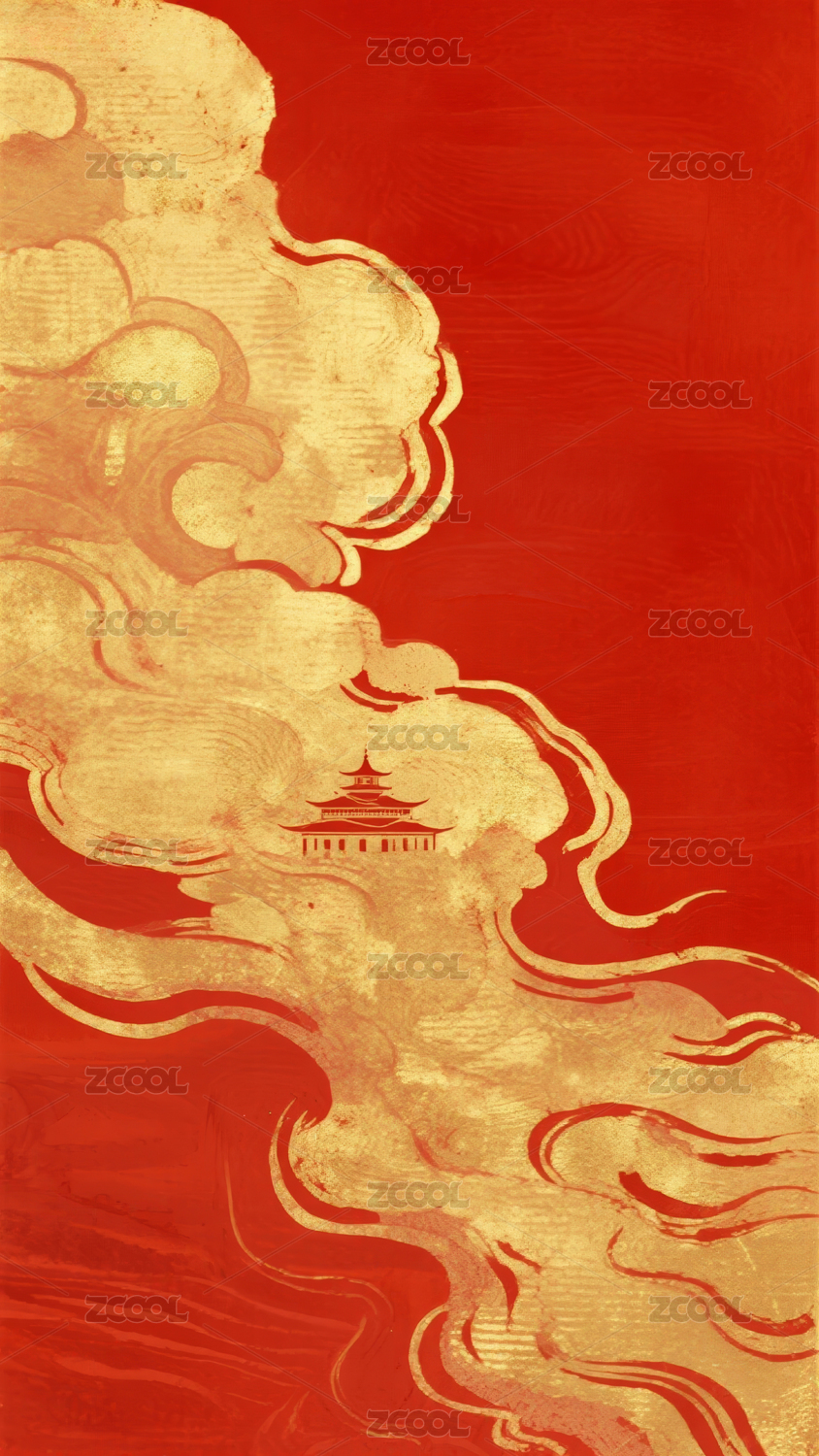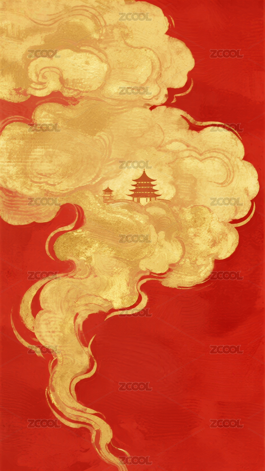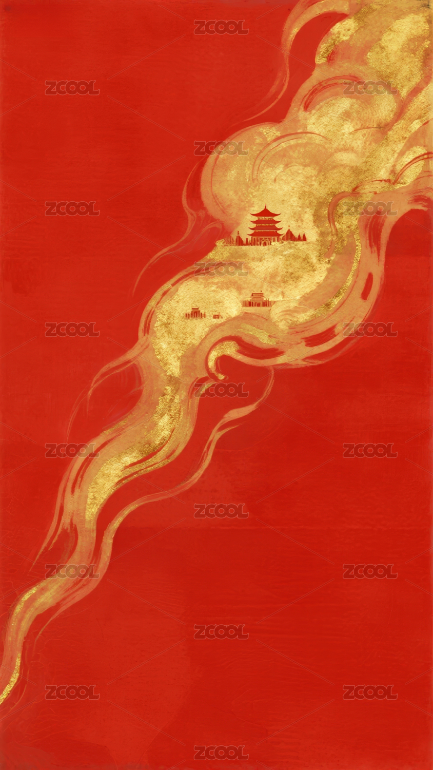 金色祥云红底