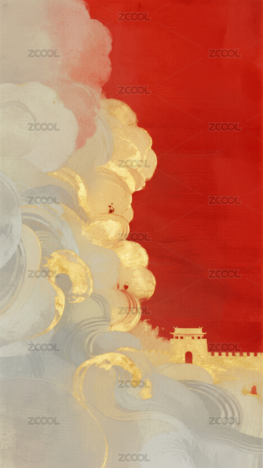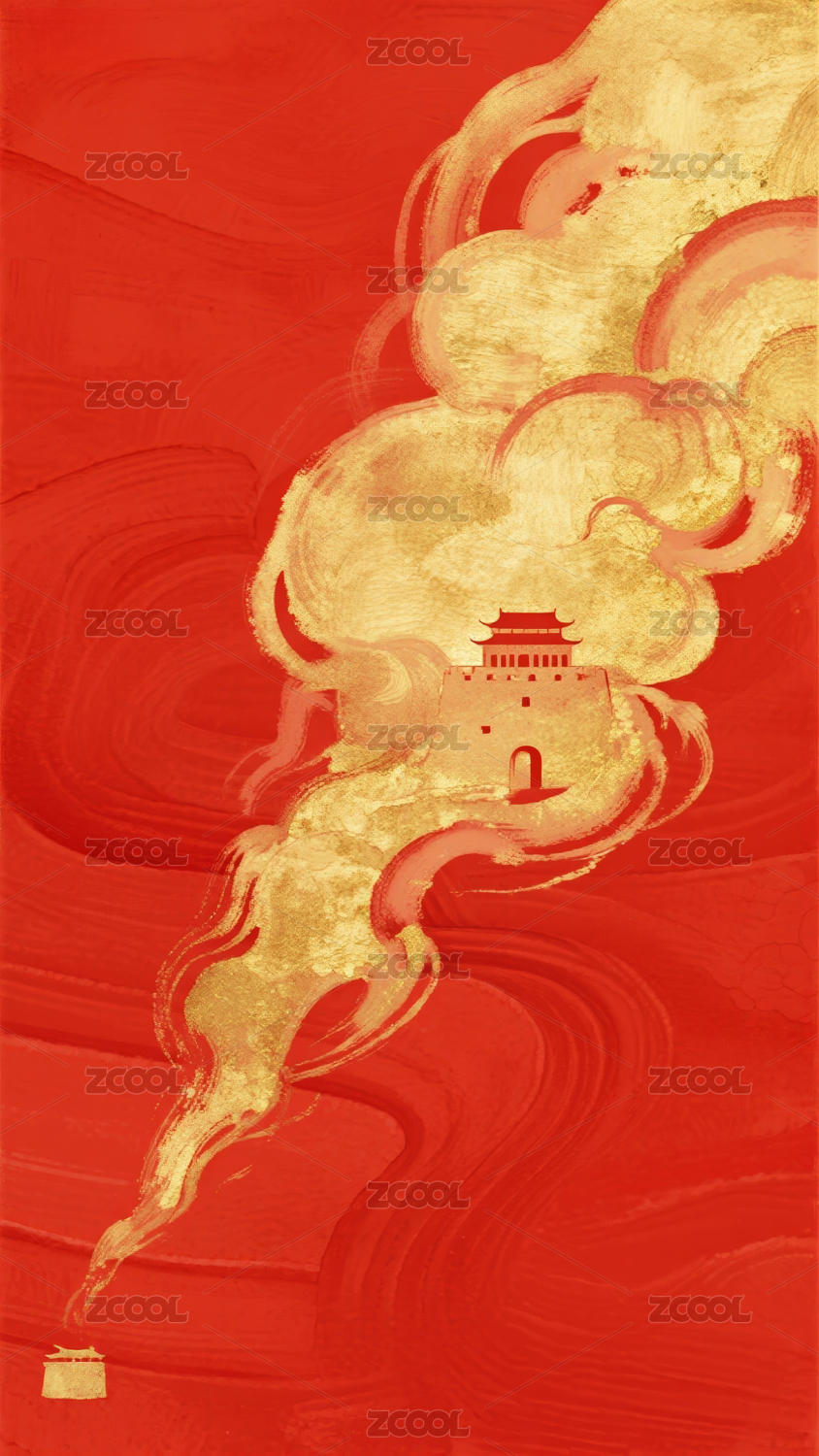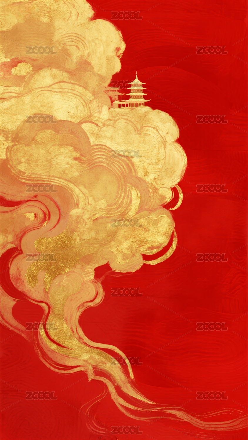 金色祥云红底