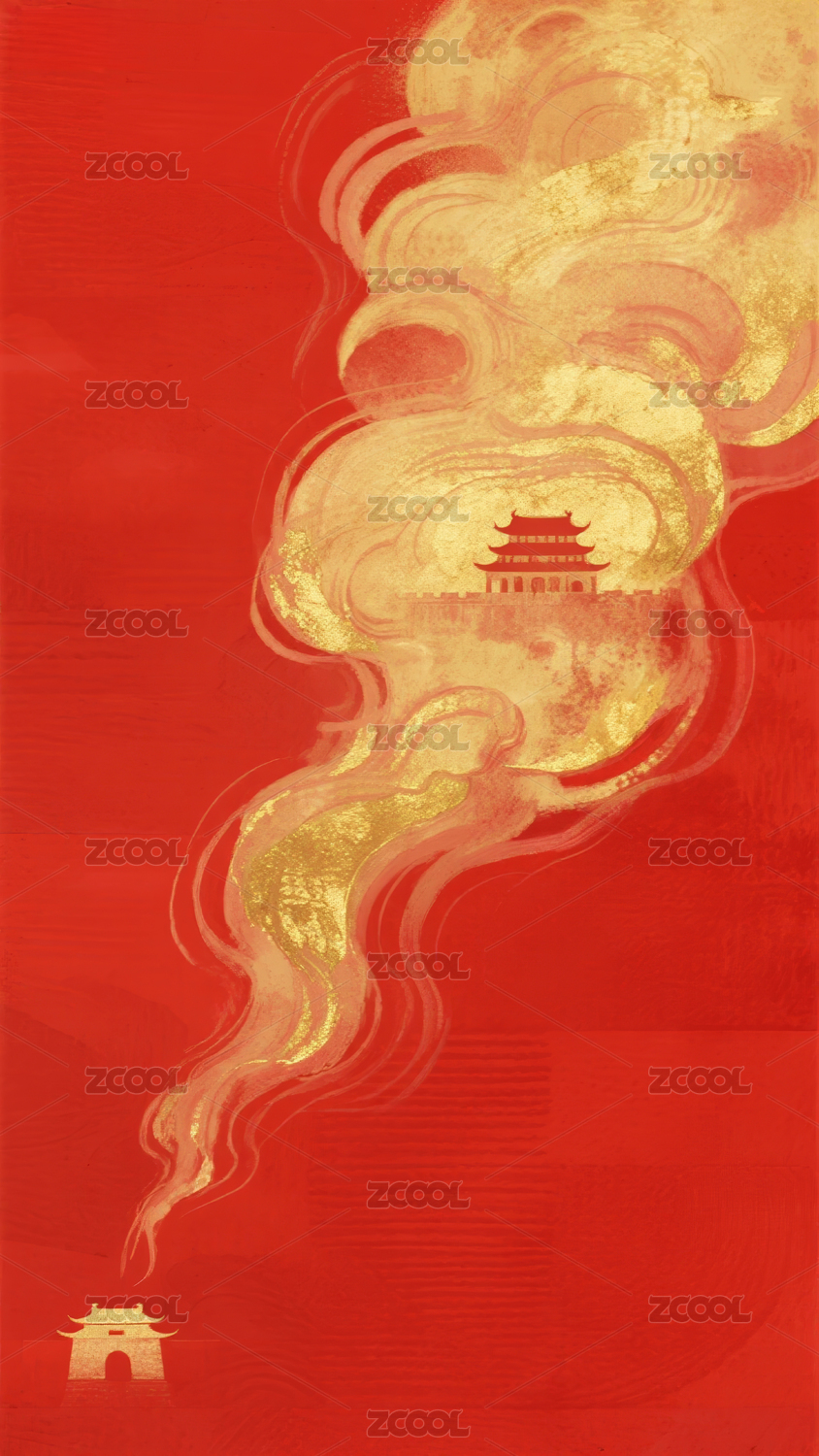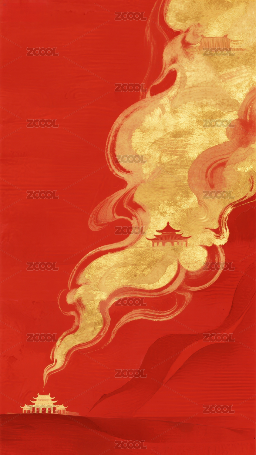 云烟缭绕红背景