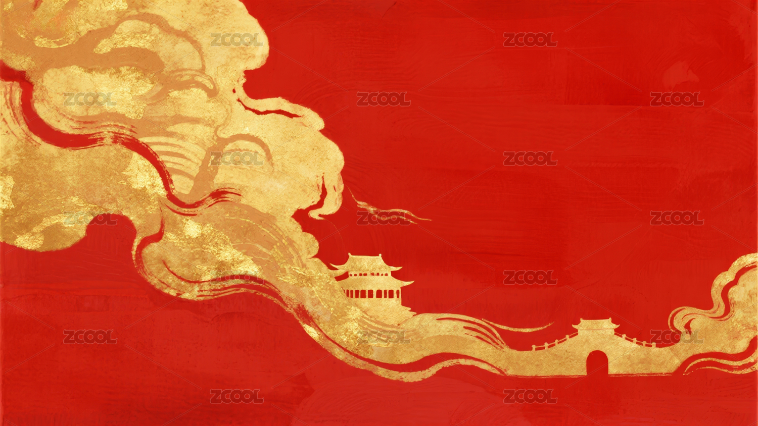 金色祥云红底背景