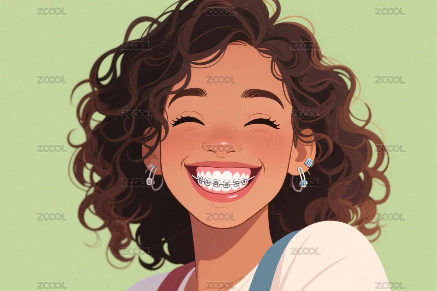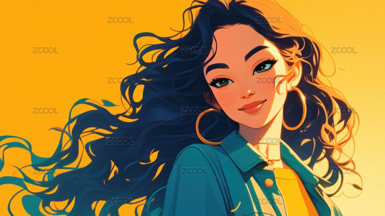 女性,插画,微笑,卷发,服饰,卡通,矢量,人物,发饰,光影