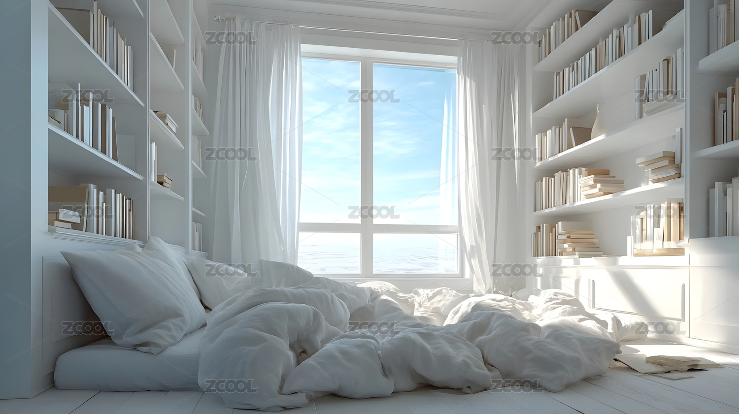 纯白书屋阳光卧室