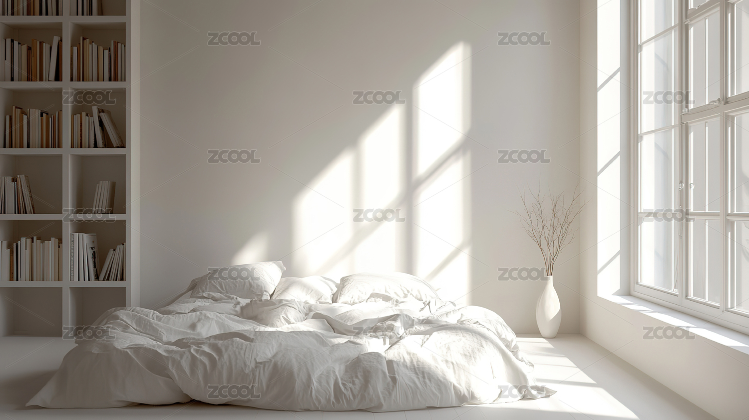 极简卧室阳光书架
