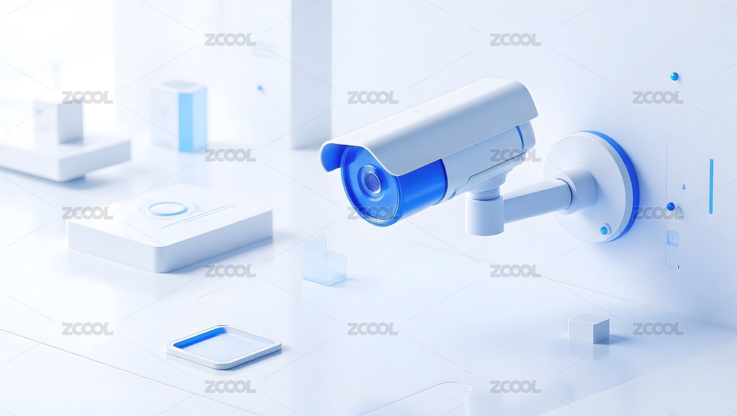 蓝色监控摄像头科技感设计