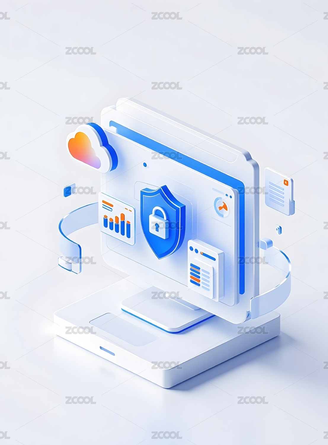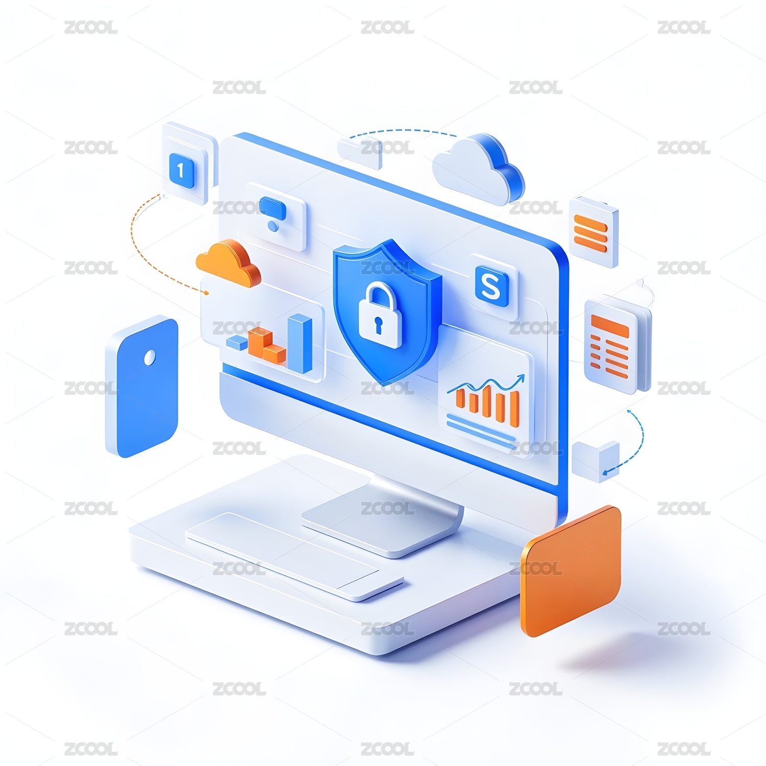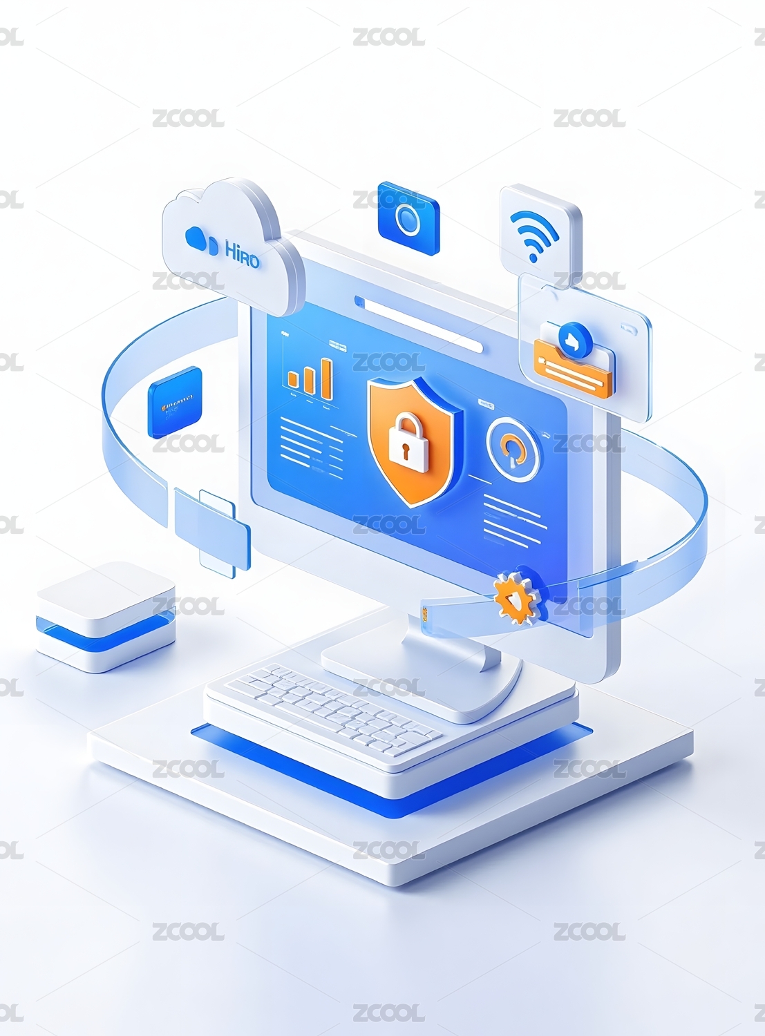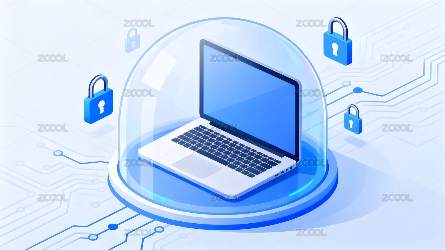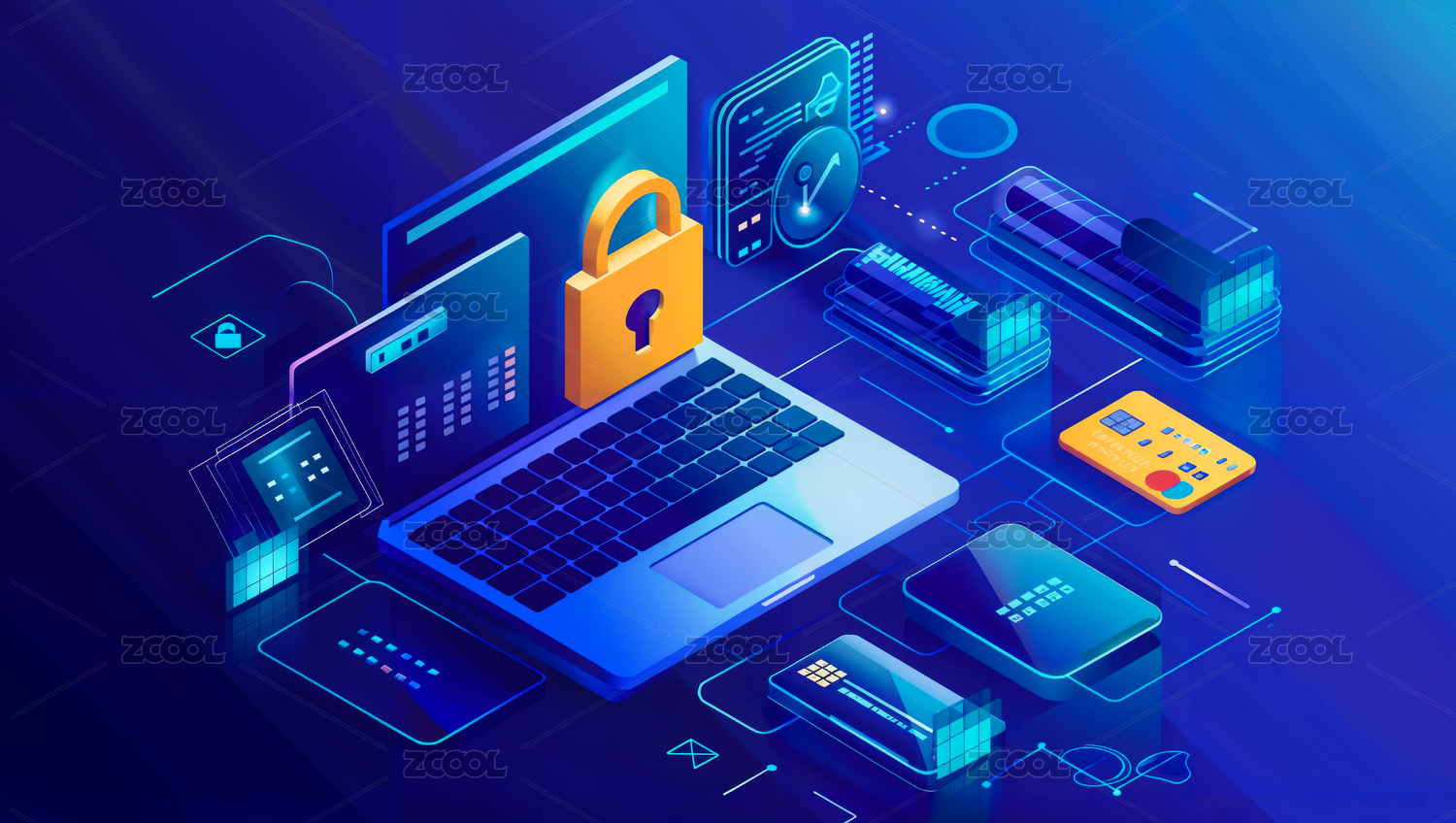 网络安全电脑科技插画