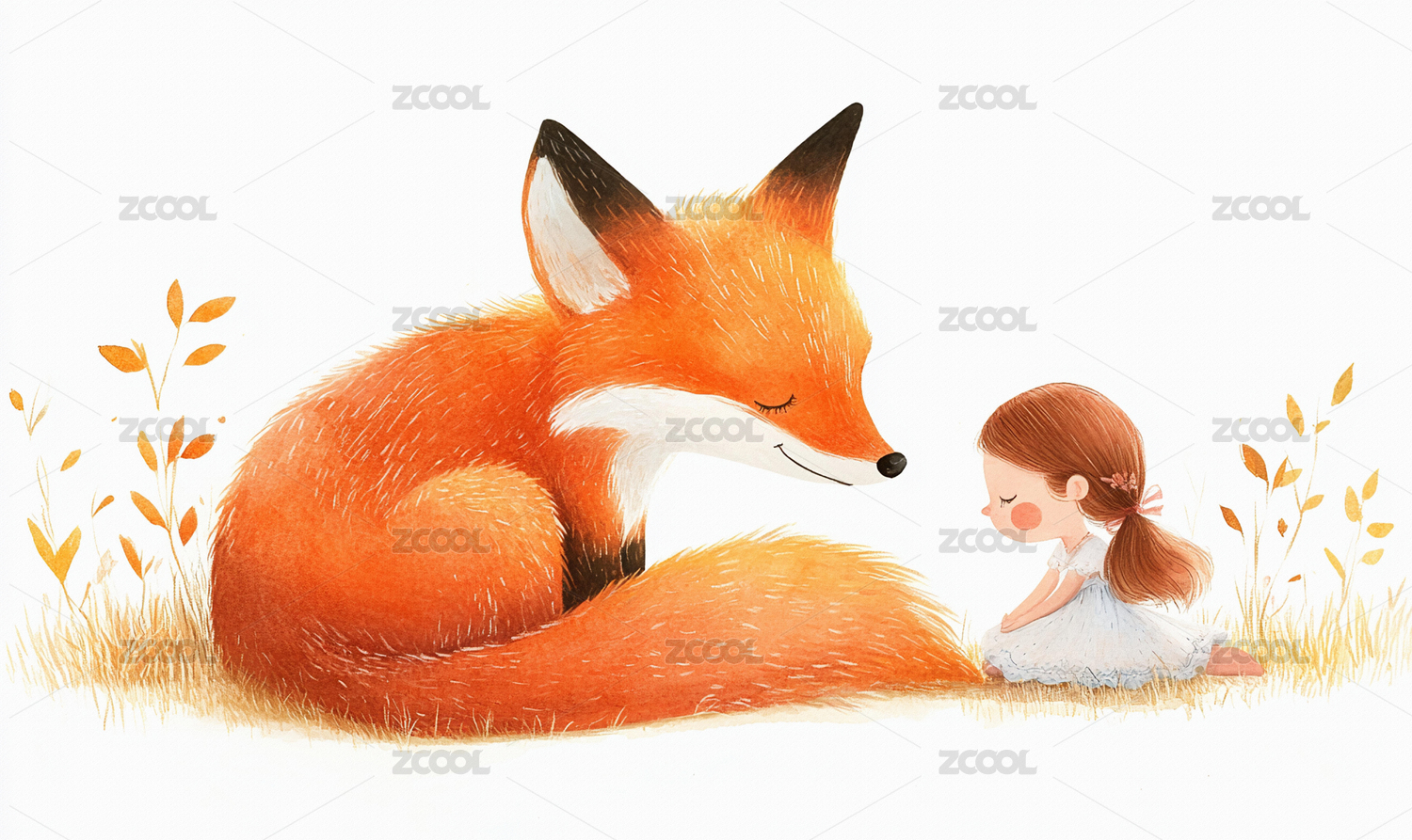 儿童绘本小女孩与狐狸卡通插画