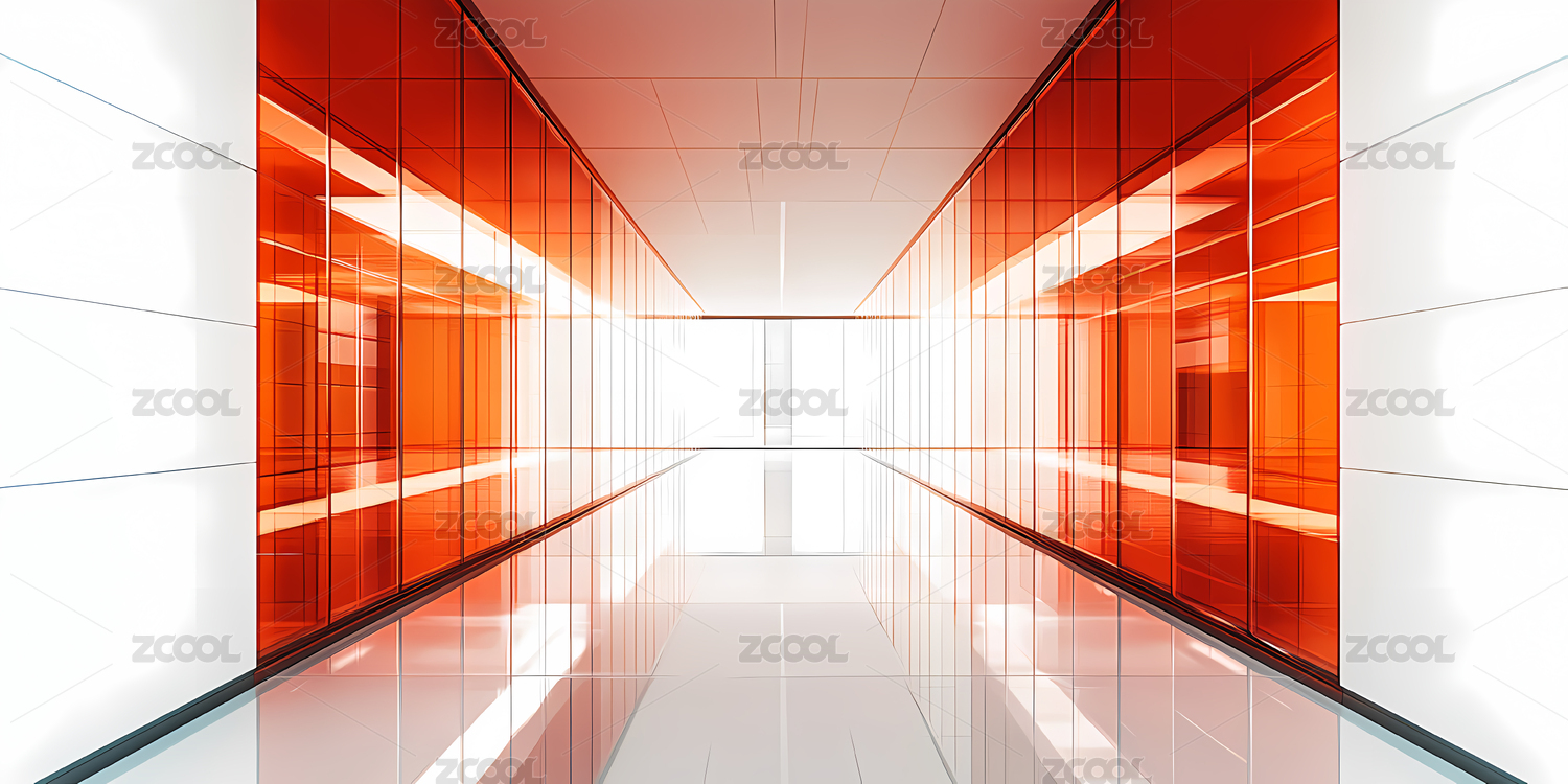 现代橙色办公走廊