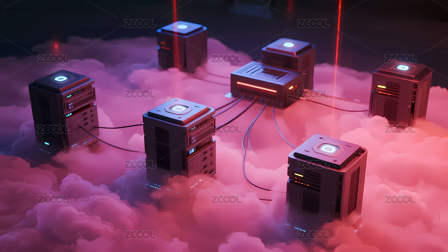 未来服务器与云雾氛围