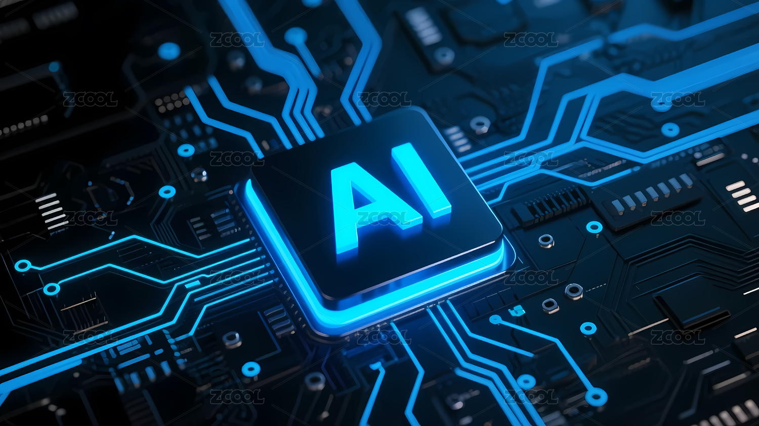 蓝色电路板与AI芯片