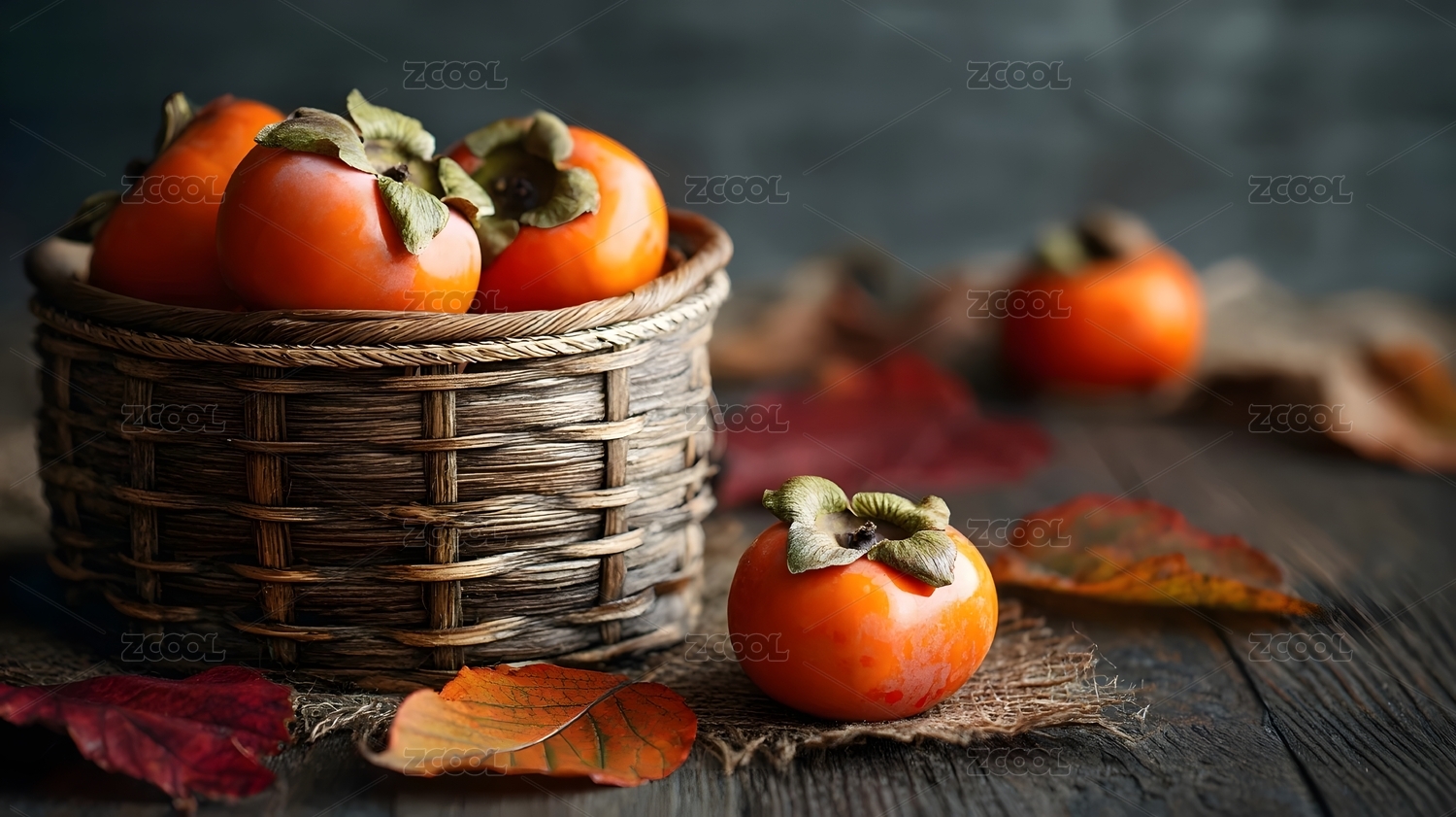 自然,橙色,叶子,枝叶,色彩,绿色,背景,艺术,设计,柿子