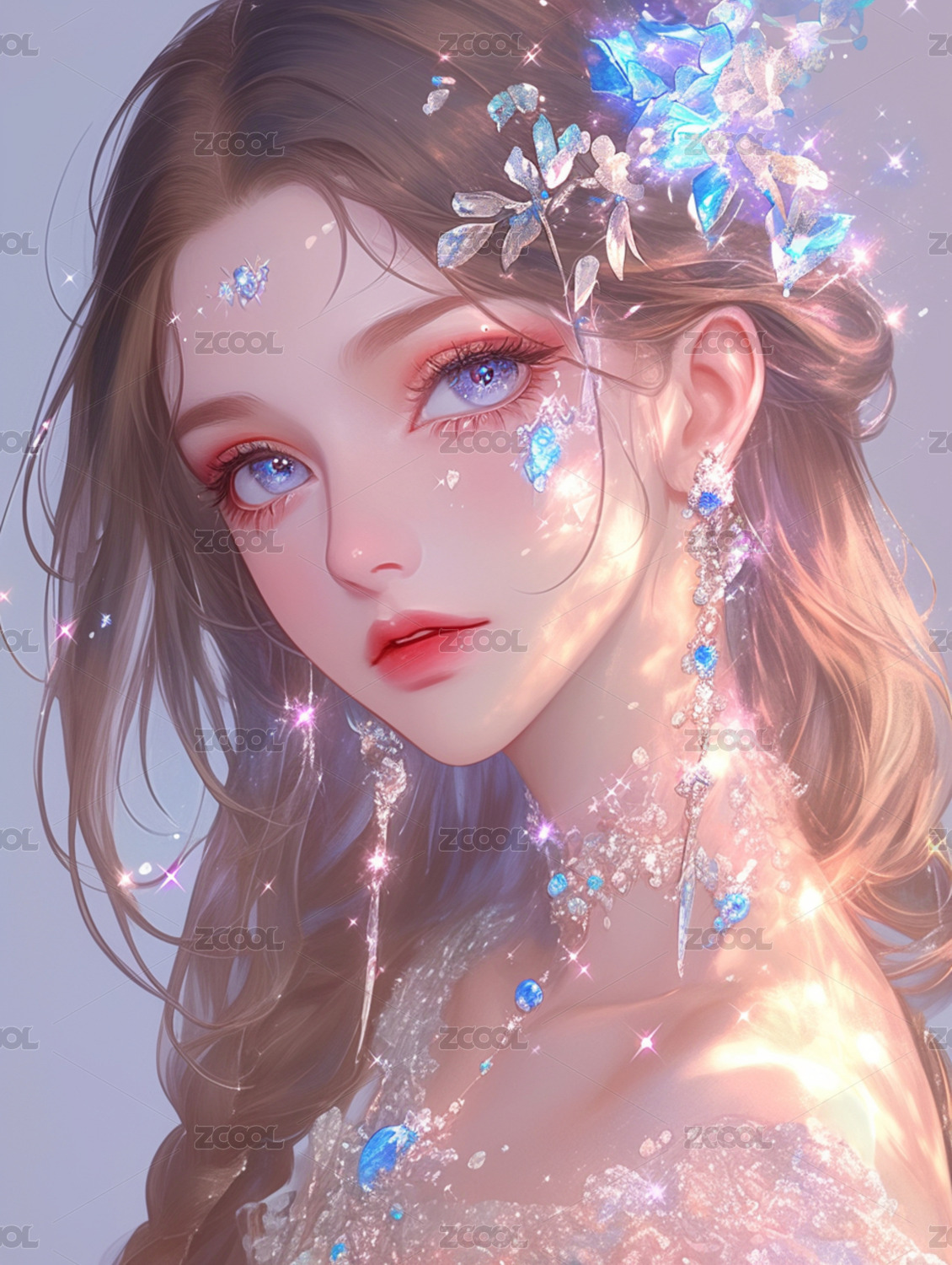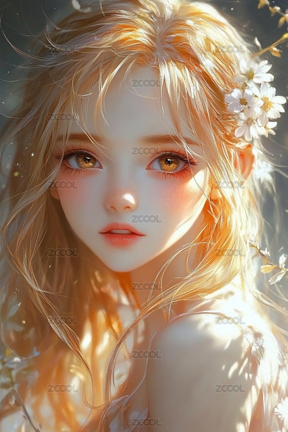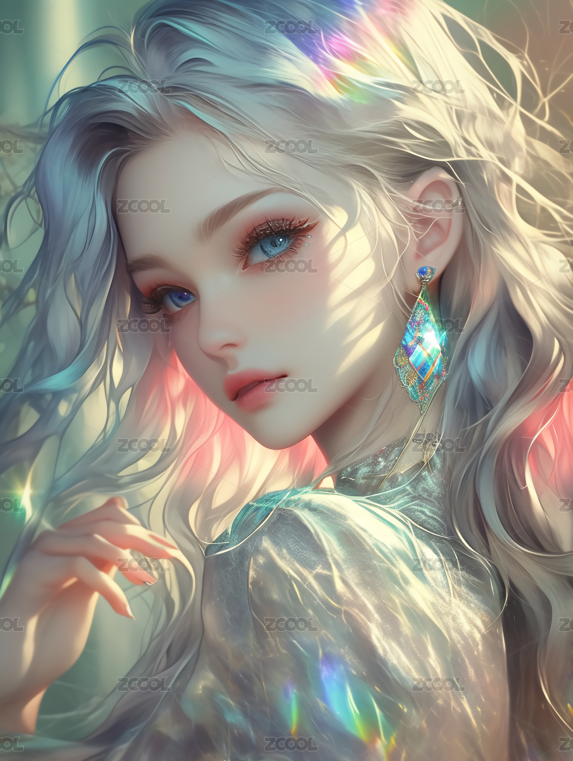 梦幻,幻想,唯美,温柔,装饰,艺术,精致,光影,长发,人物