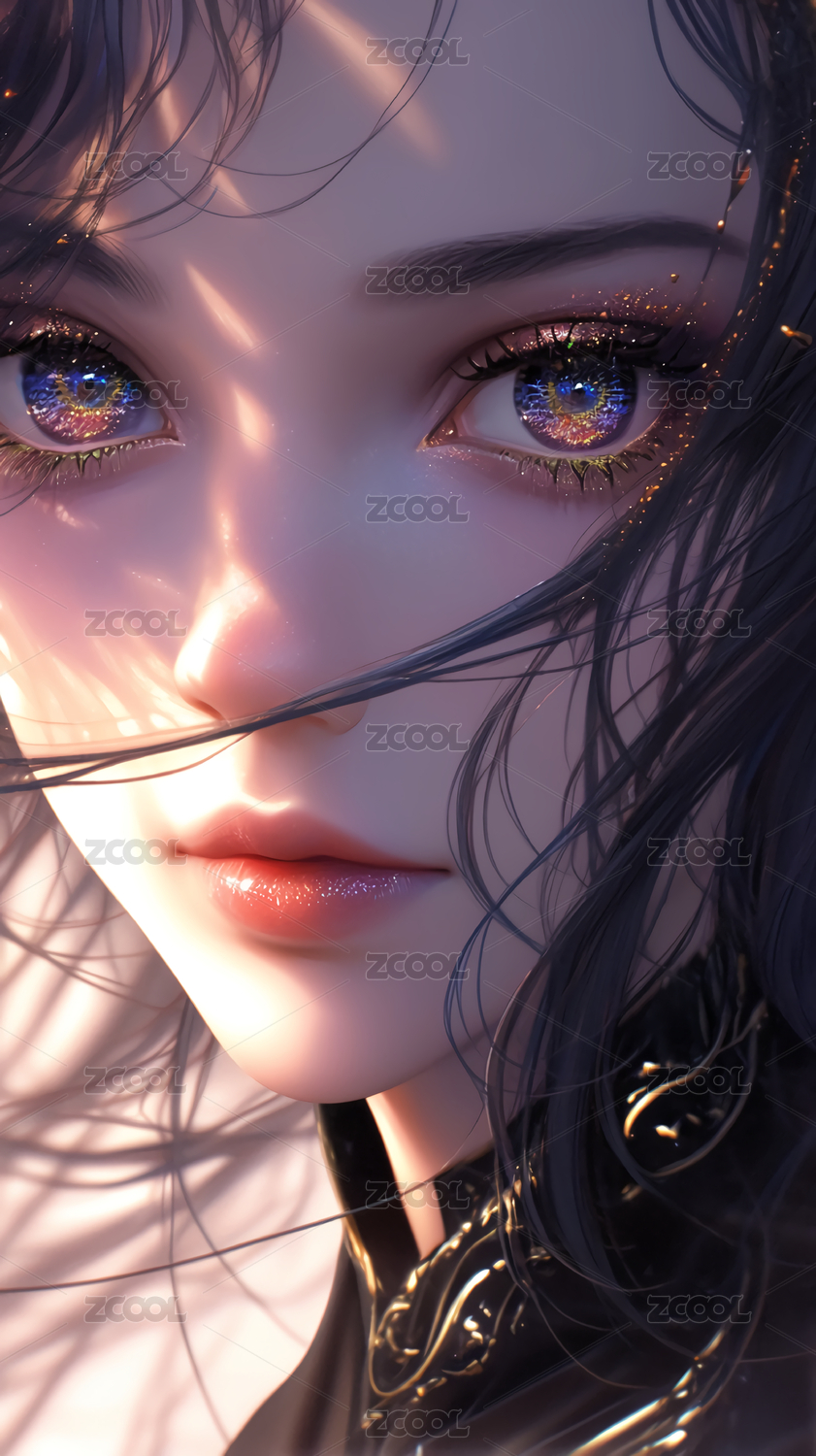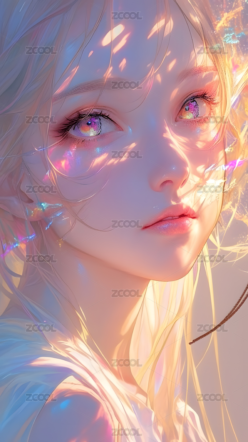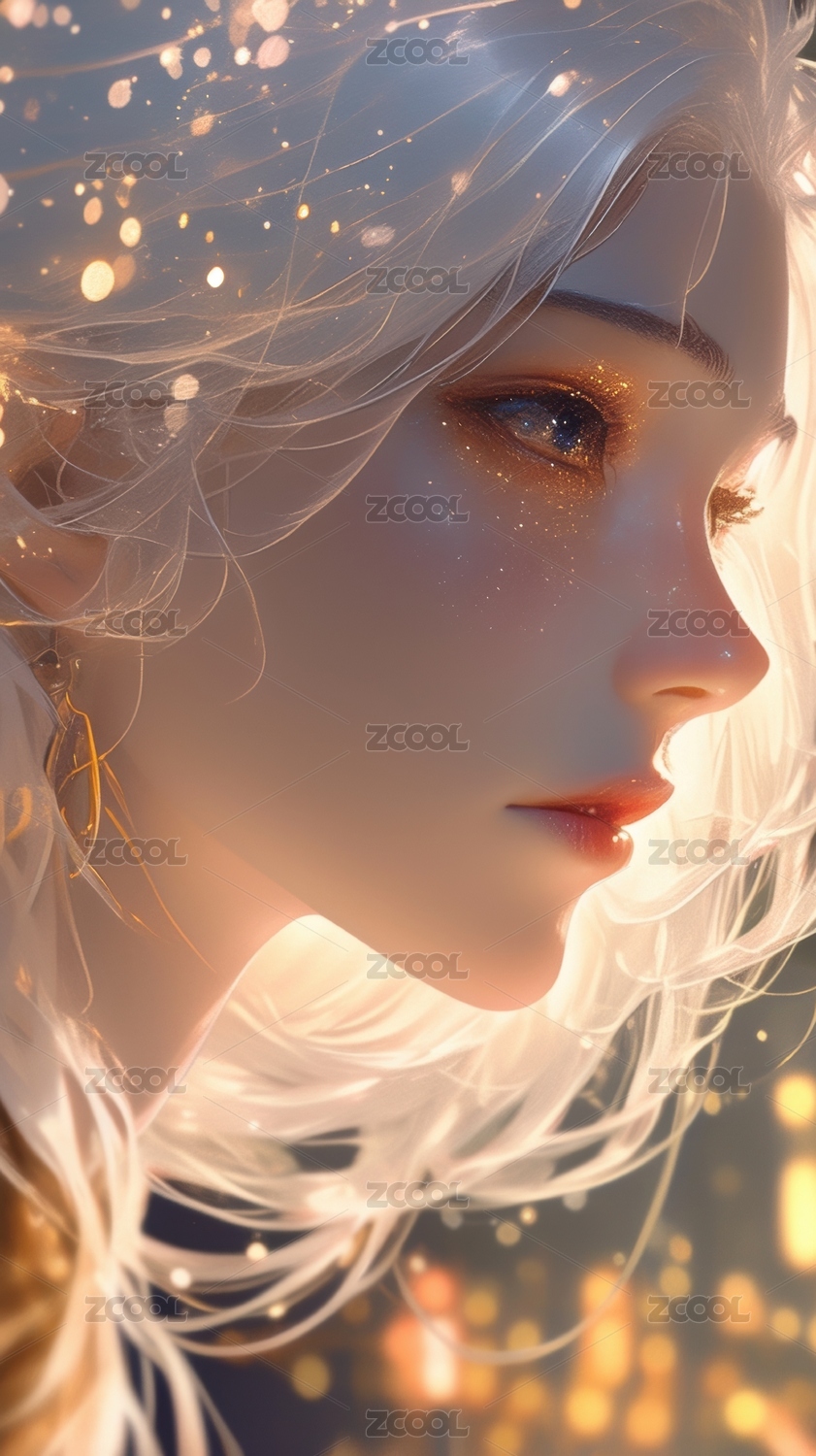 梦幻,唯美,装饰,艺术,线条,精致,光影,少女,人物,发丝