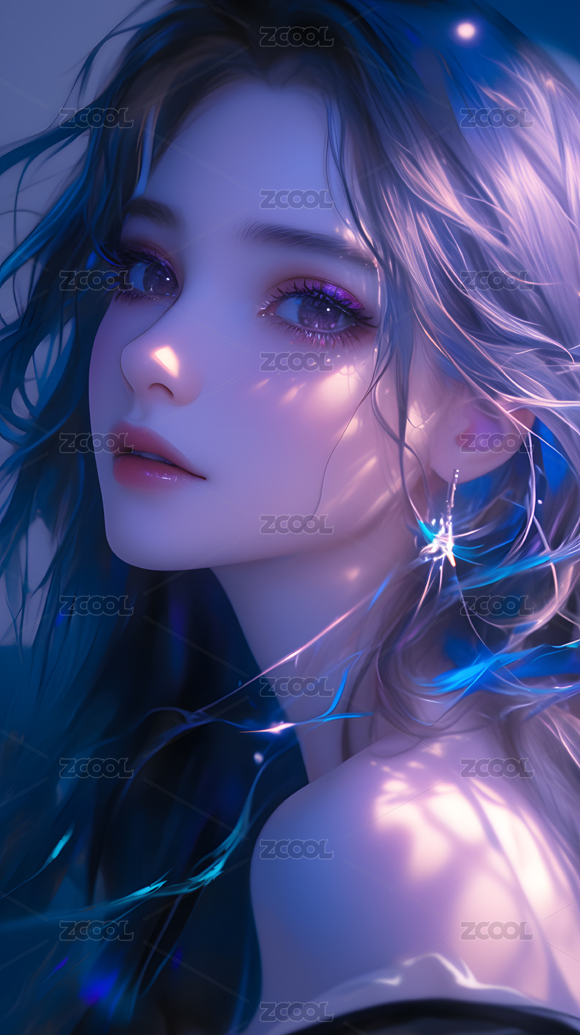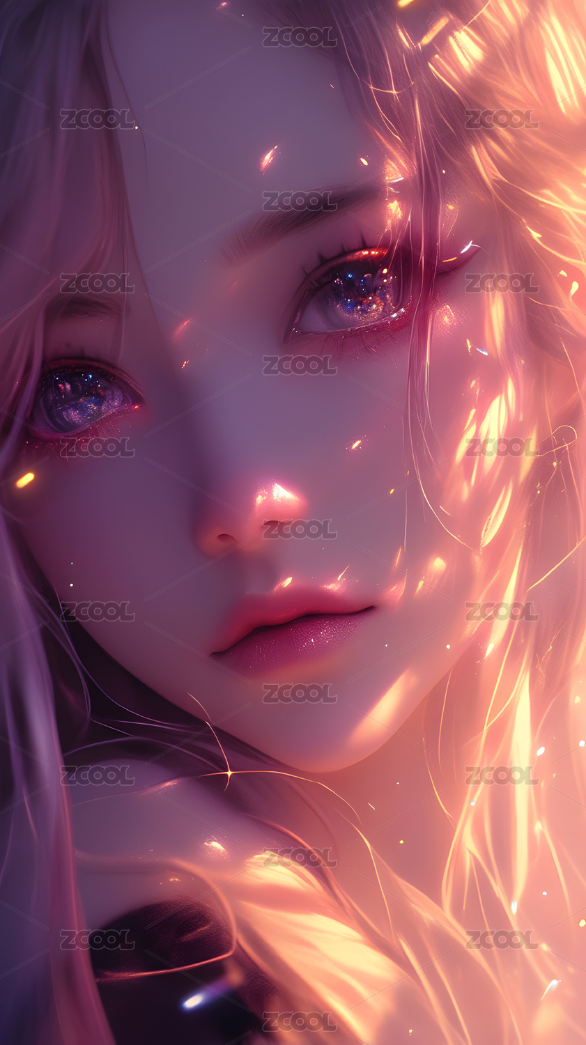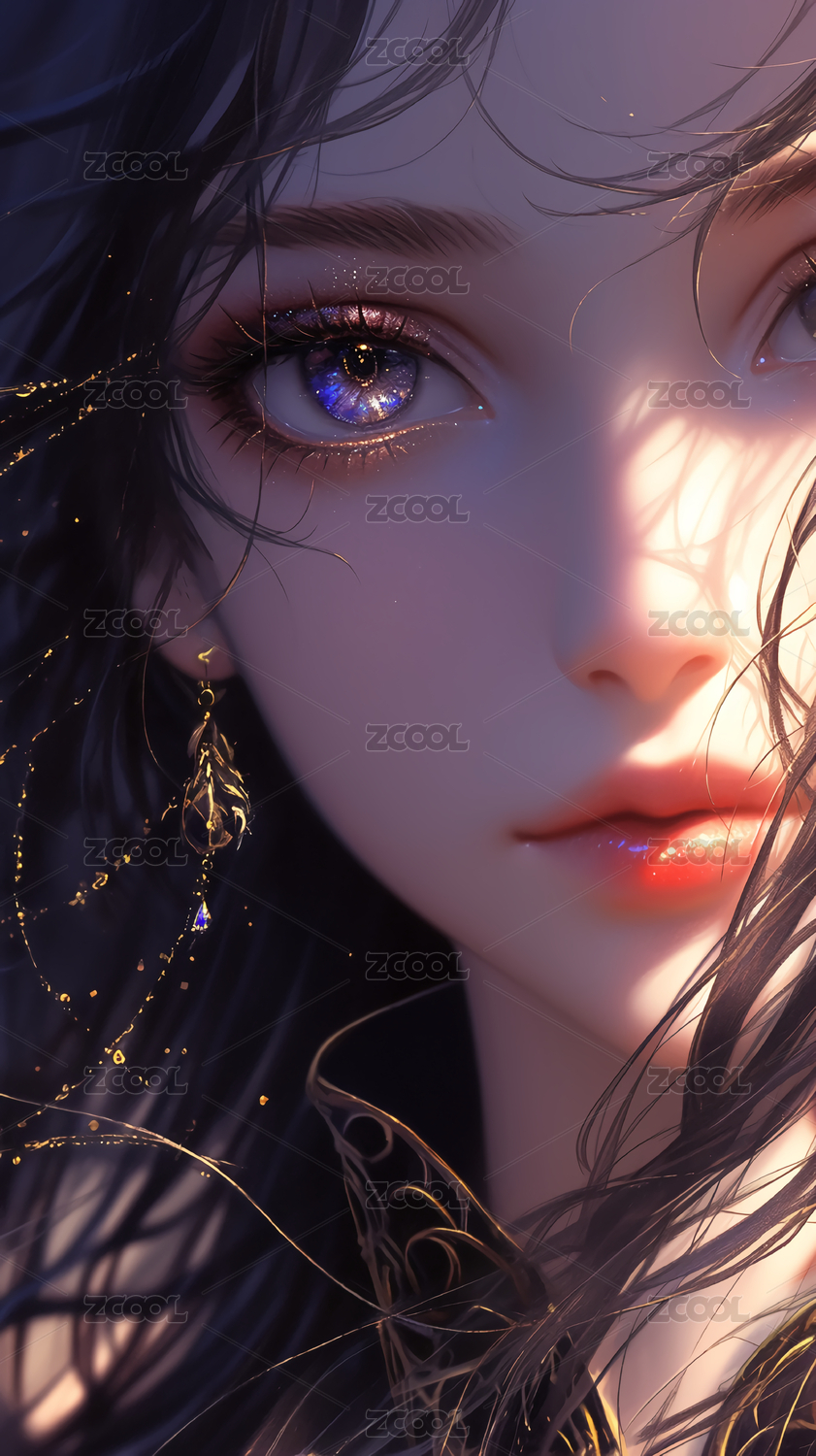 梦幻,唯美,装饰,艺术,线条,精致,光影,少女,人物,发丝