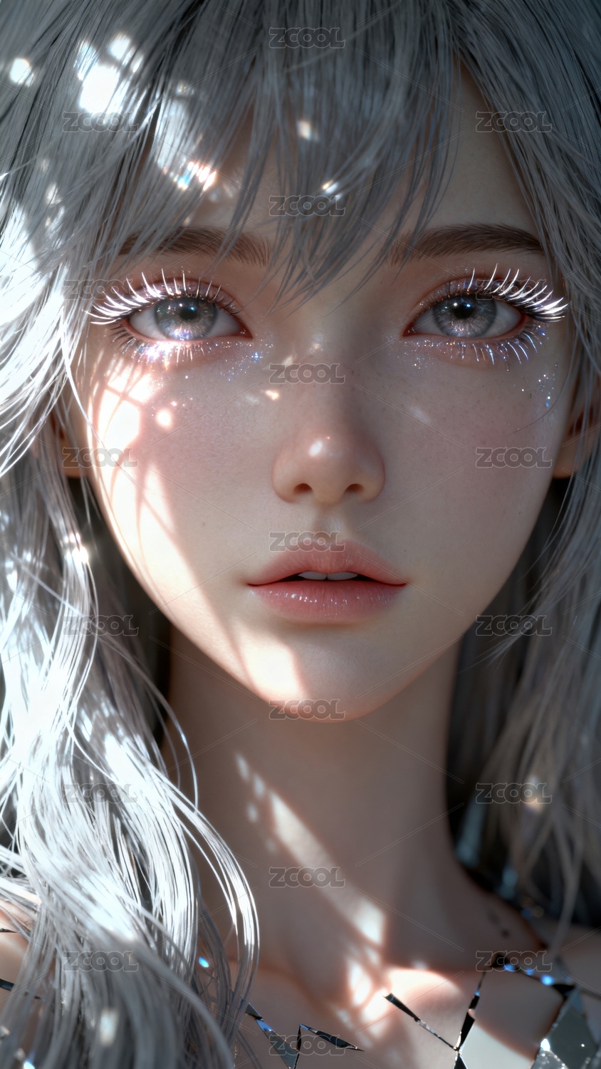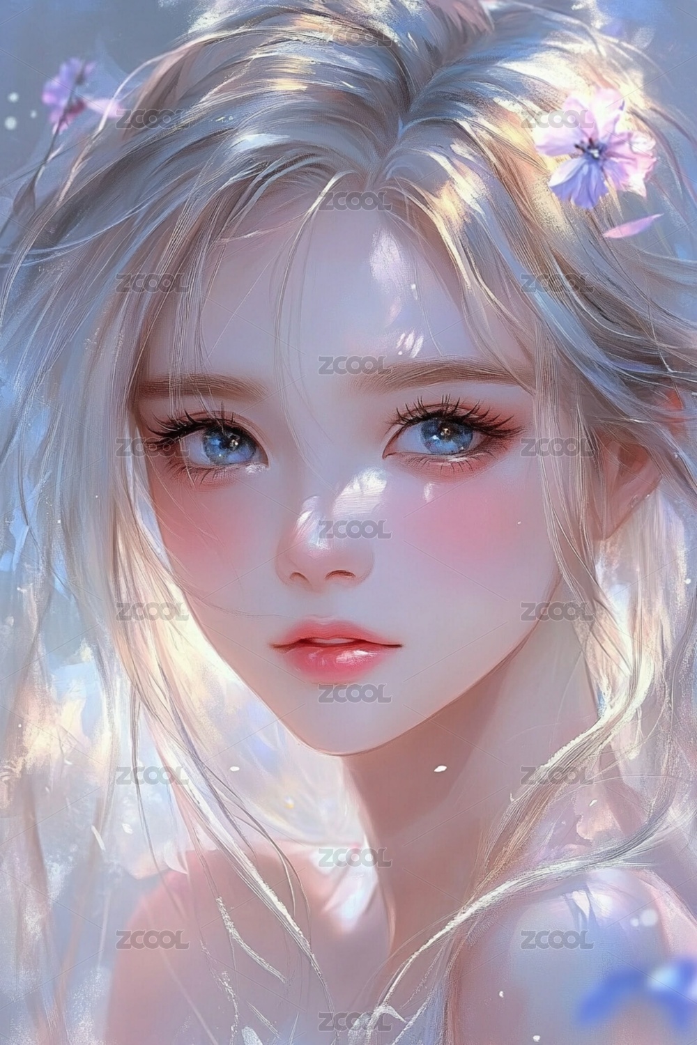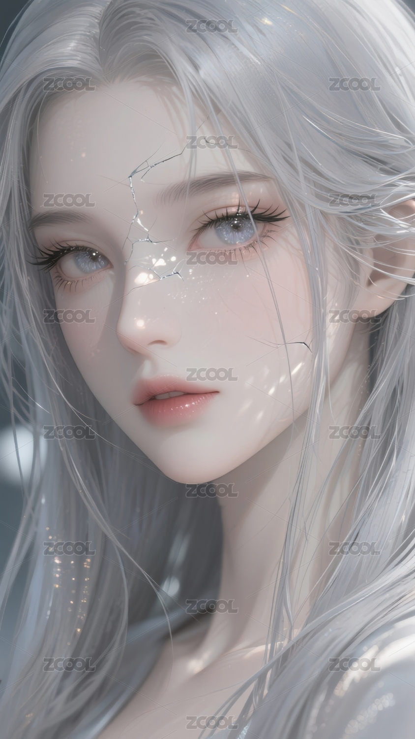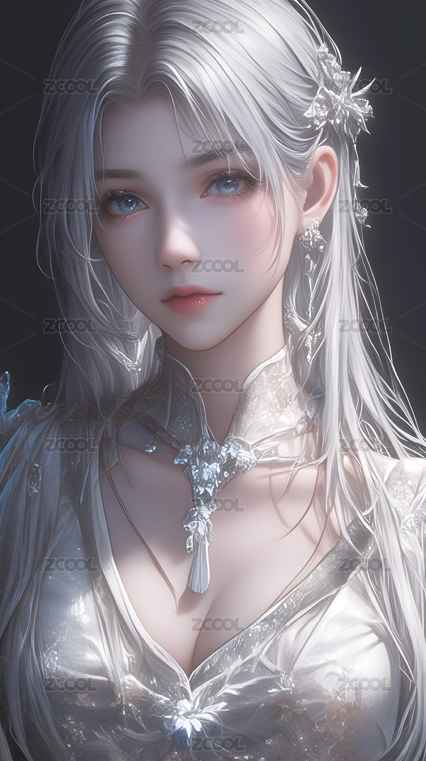 银发蓝眼女神晶莹剔透的装扮神秘而优雅
