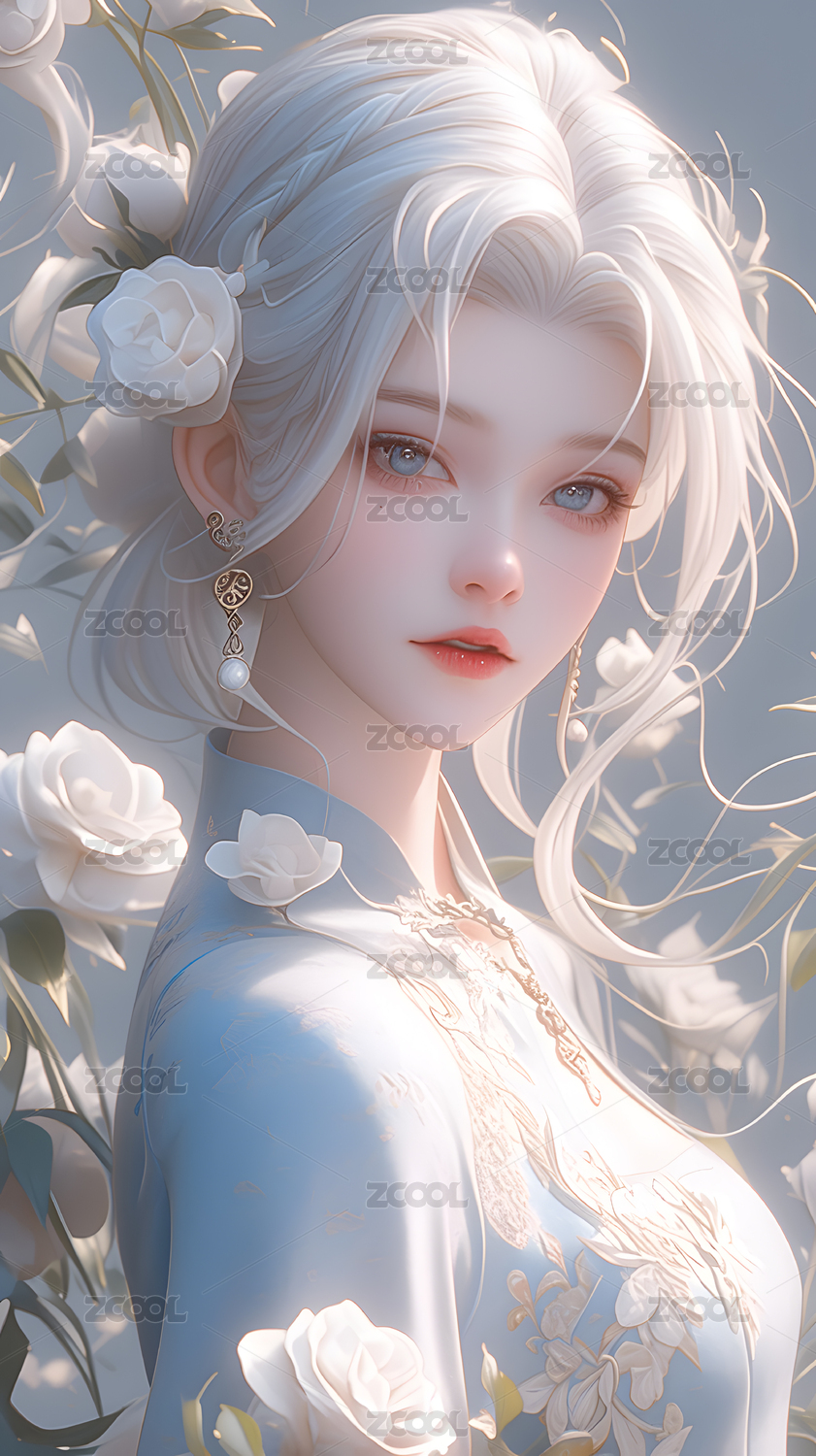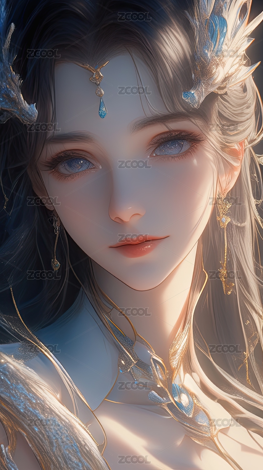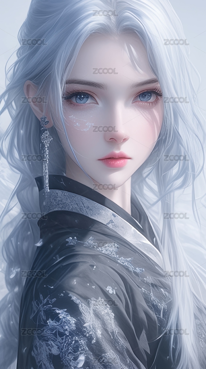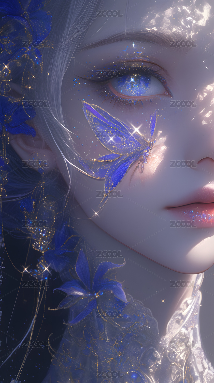 银发蓝眼女神晶莹剔透的装扮神秘而优雅