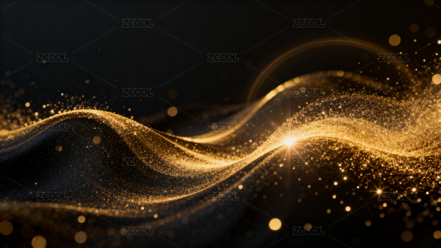 金色,背景,粒子,光束,黑色,光线,光斑,光点,流动,波浪