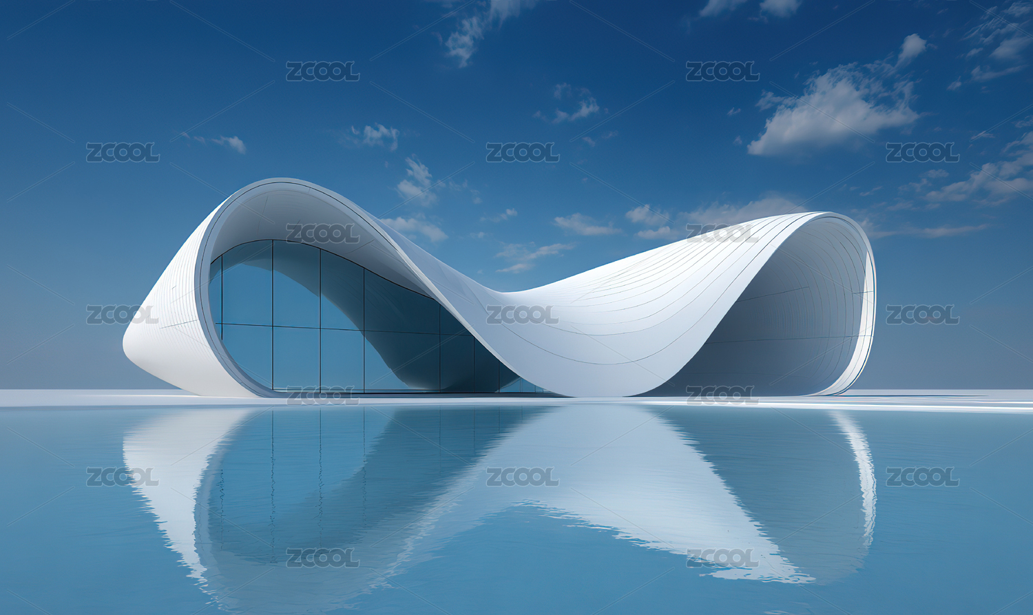 光滑,白色,蓝天,水面,简约,设计,反射,建筑,玻璃,曲线