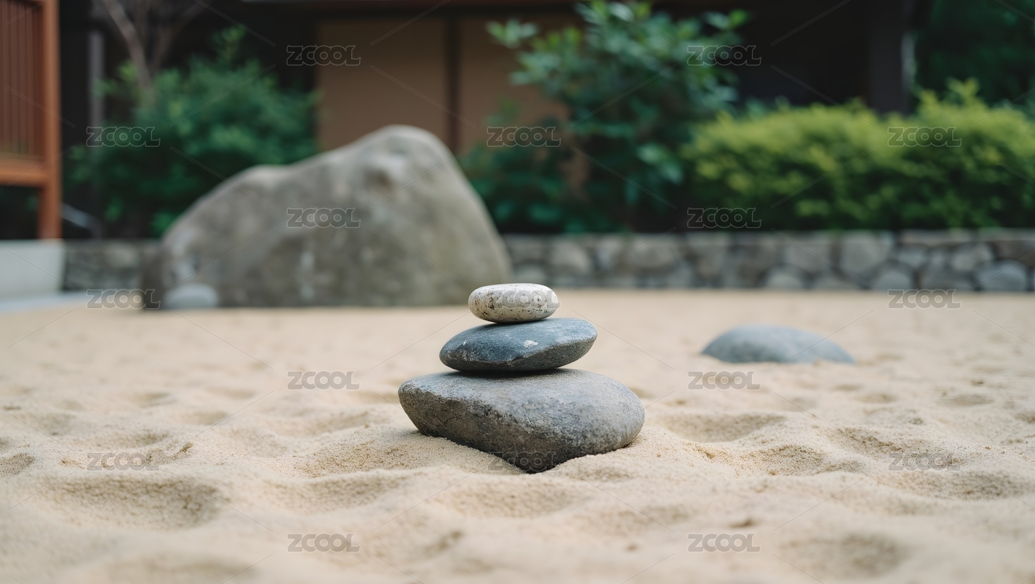 沙子上的禅石堆叠的石头处于平衡状态