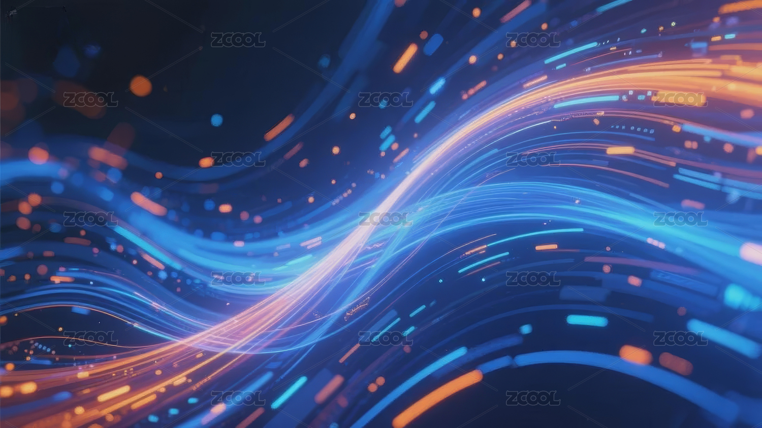 蓝橙光点波浪线条