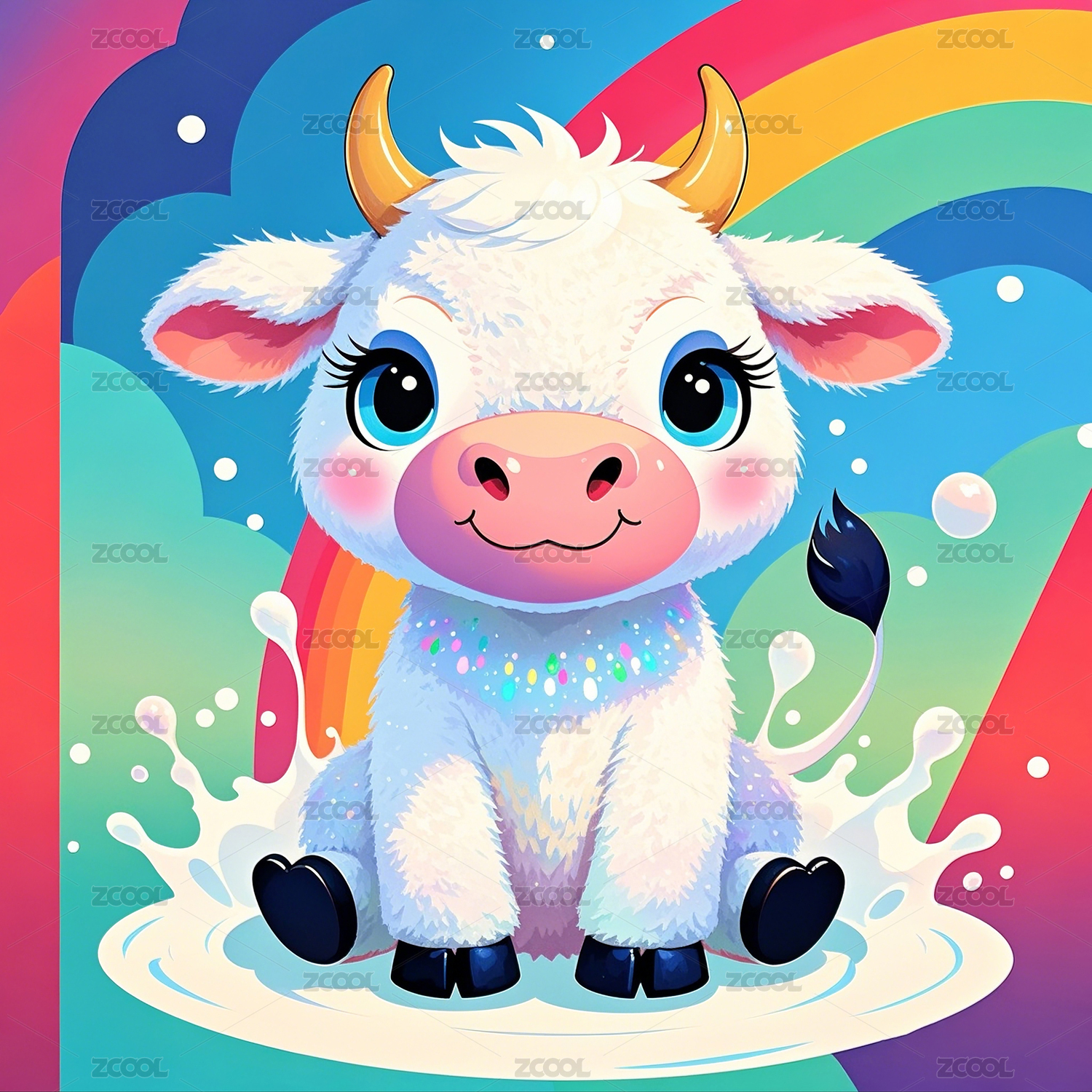 彩虹卡通奶牛插画