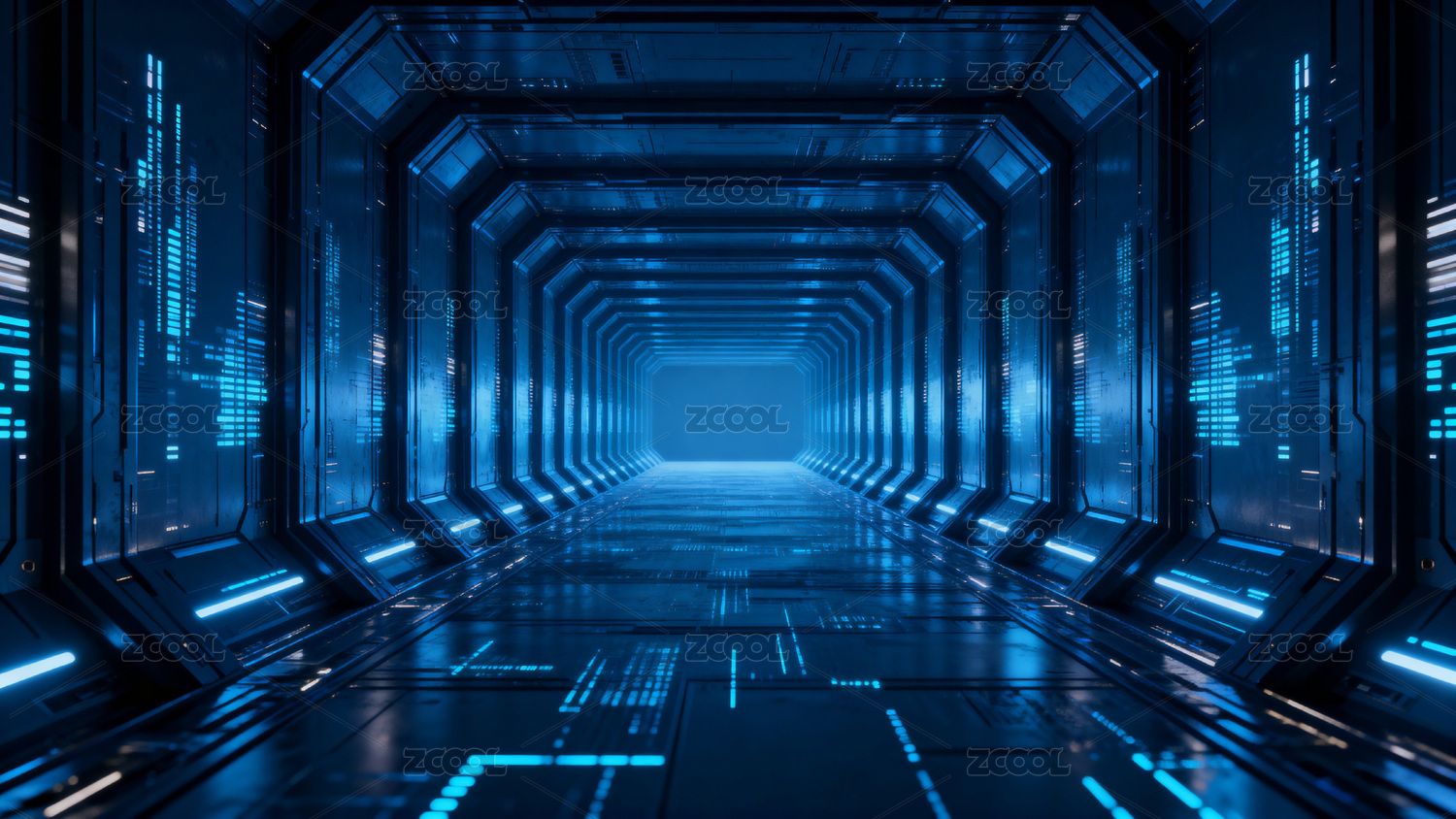 灯光,未来,科技,蓝色,光影,隧道,金属,结构,电子,发光