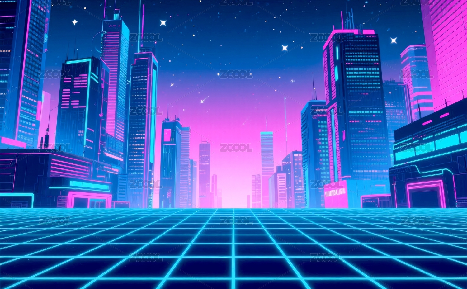 科技,光效,蓝色,数字,现代,城市,霓虹,建筑,灯光,科幻