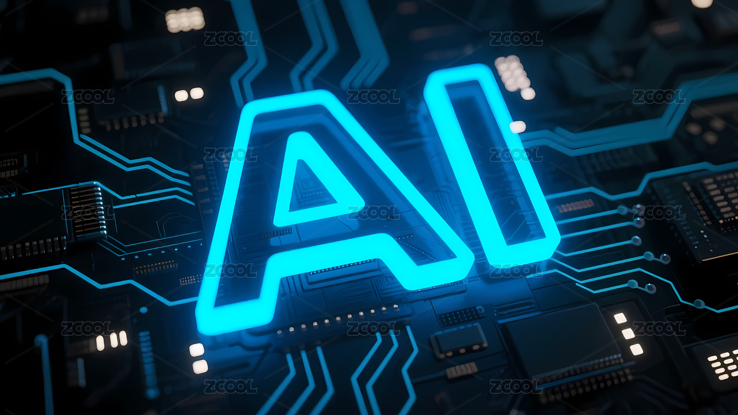 蓝色发光AI电路板图案