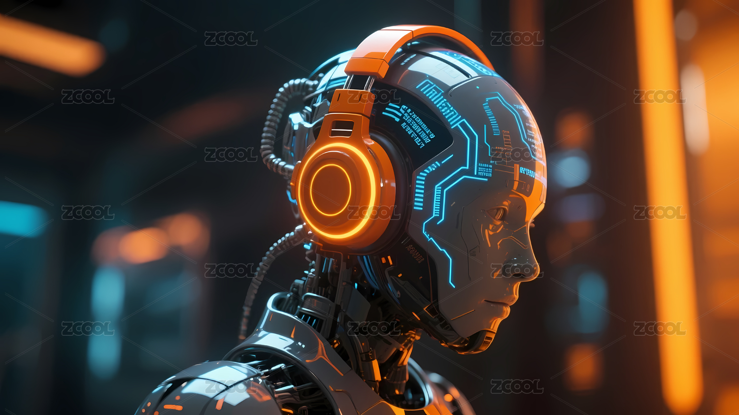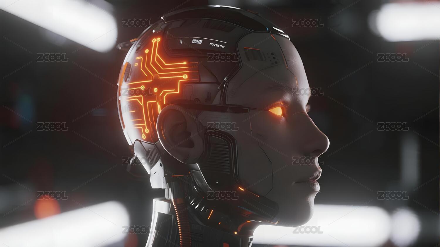 科技感机器人头部场景