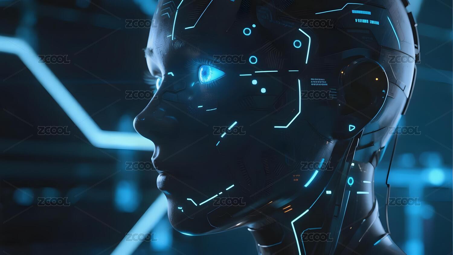 未来科技感机器人侧脸特写